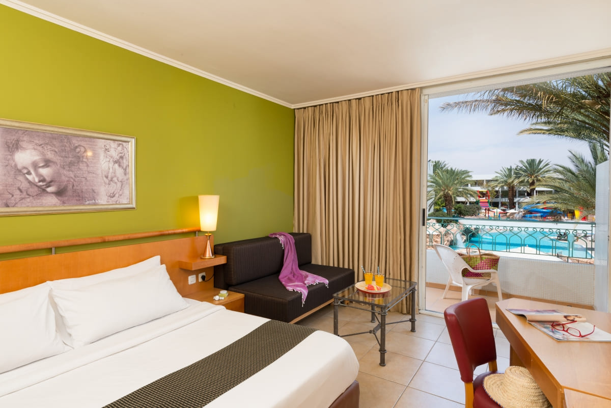 Superior pool view (20 кв. м.,): макс. 2 взрослых + 2 детей, номера с видом на бассейн, спальня, ванная комната.