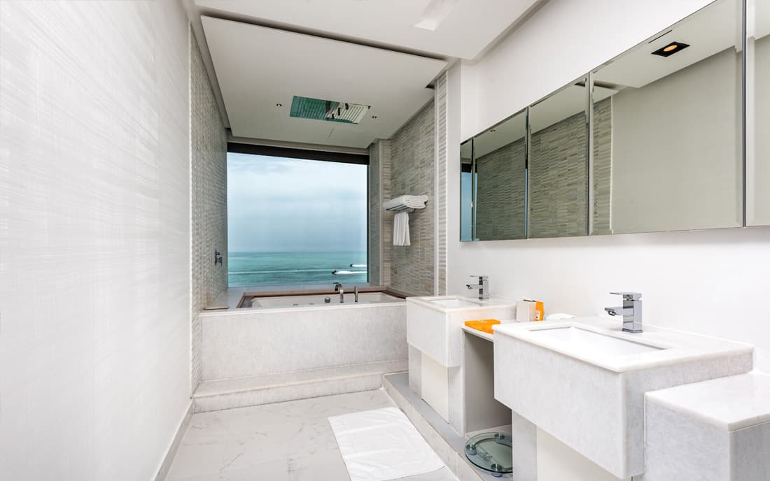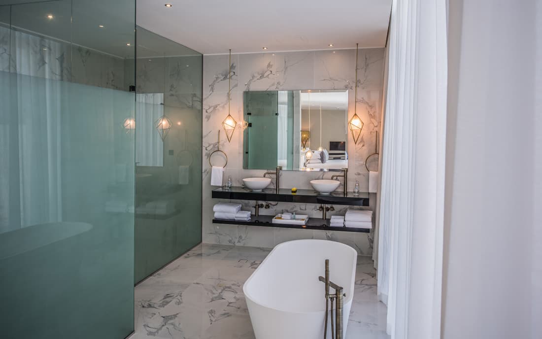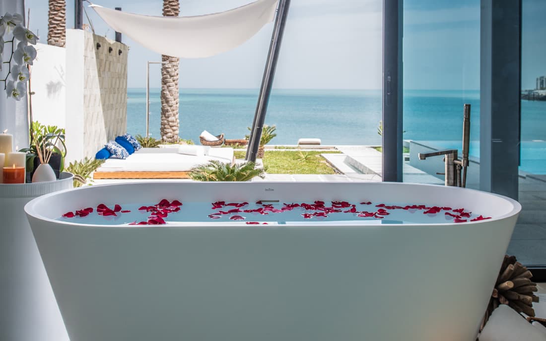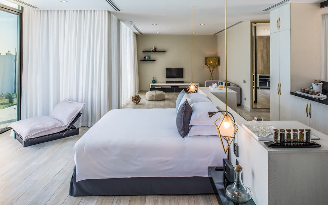 Оформленные в современном стиле виллы гармонируют с окружающим пейзажем. На виллах есть собственный бассейн с регулируемой температурой воды, французские окна, из которых открывается вид на Аравийское море, открытая терраса, просторная гостиная зона, кофемашина Nespresso, ванна и тропический душ.