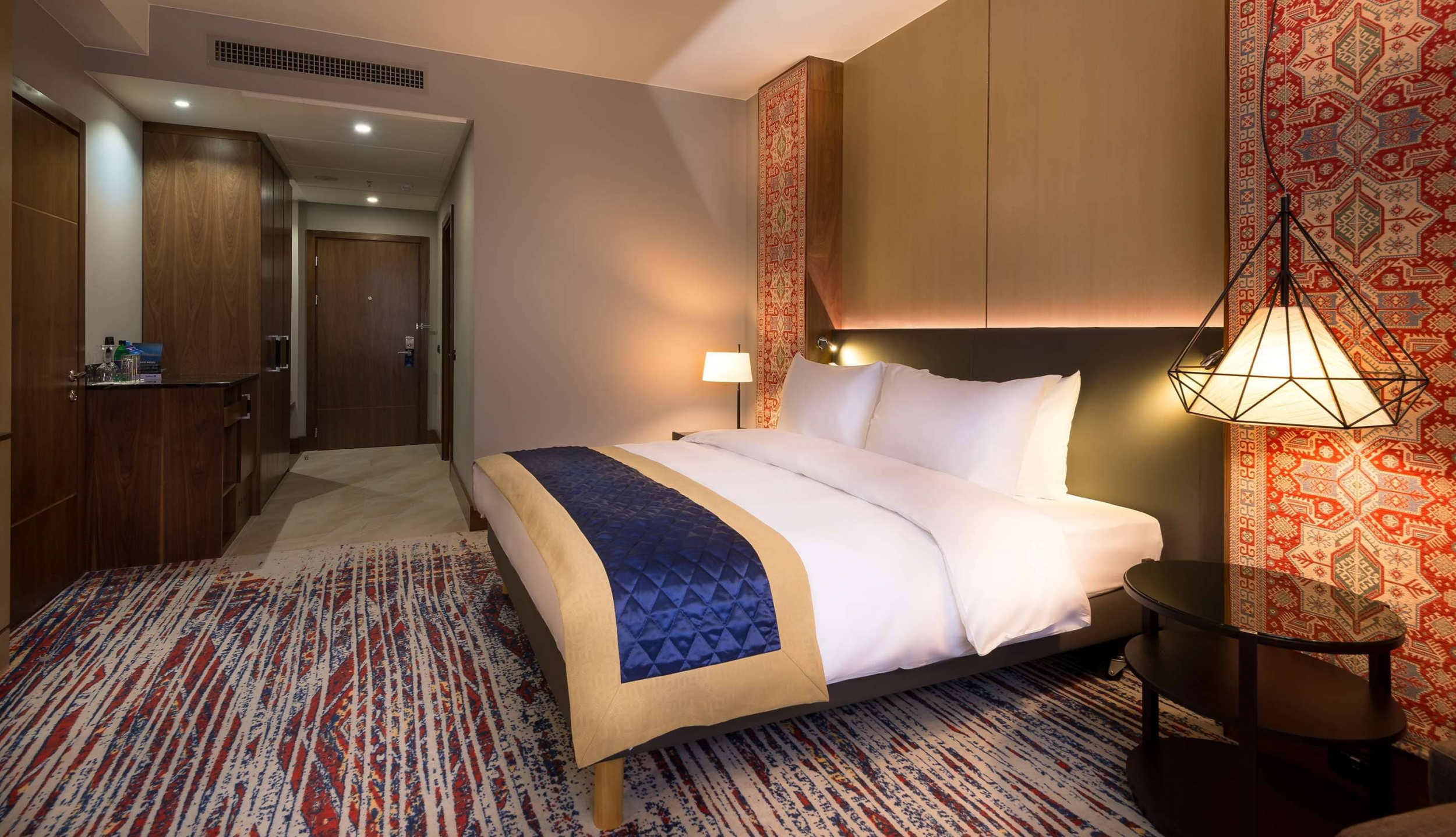 Executive suite (62 кв. м). Спальня с гостиной зоной, ванная комната. Вид на город и гору Арарат.