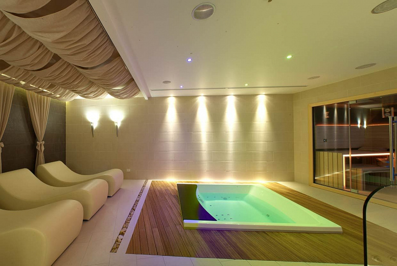 104 номера, ресторан, бар, открытый бассейн (в летний период), спа-центр, тренажерный зал, сауна, 3 конференц-зала, Wi-Fi доступ в Интернет.
