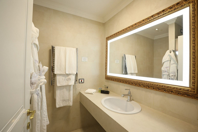 Suite (38 кв. м). Балкон (в некоторых номерах), гостиная, спальня с кроватью king-size, ванная комната. Вид на город.