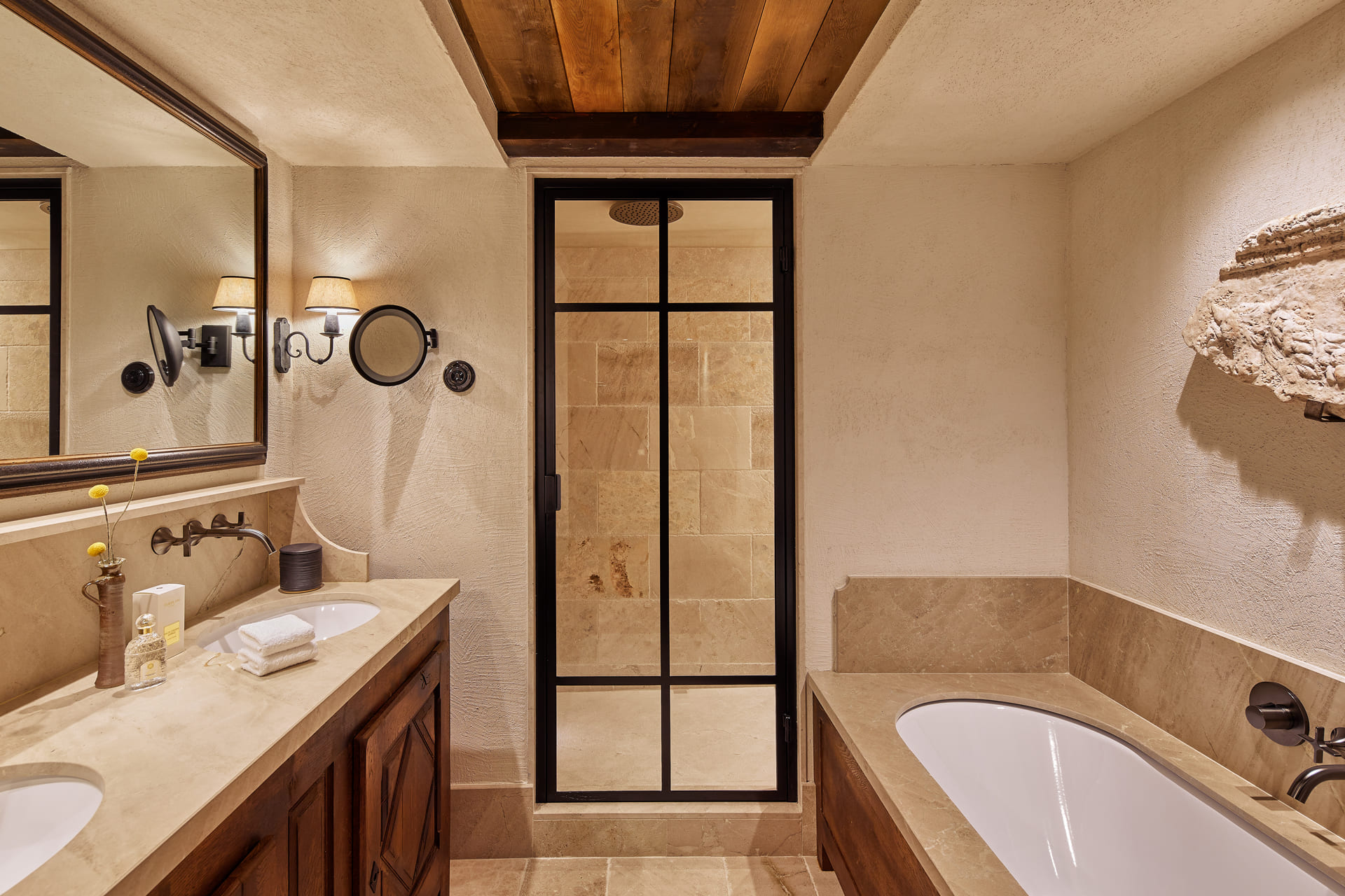 Two-bedroom penthouse d’Epierre (110 кв. м). Балкон, гостиная с камином, мини-кухня, 2 спальни, 2 ванные комнаты (каждая – с ванной и душевой кабиной с функцией парной), гостевой туалет. Расположен на 5 этаже. Вид на склоны. Услуги дворецкого.