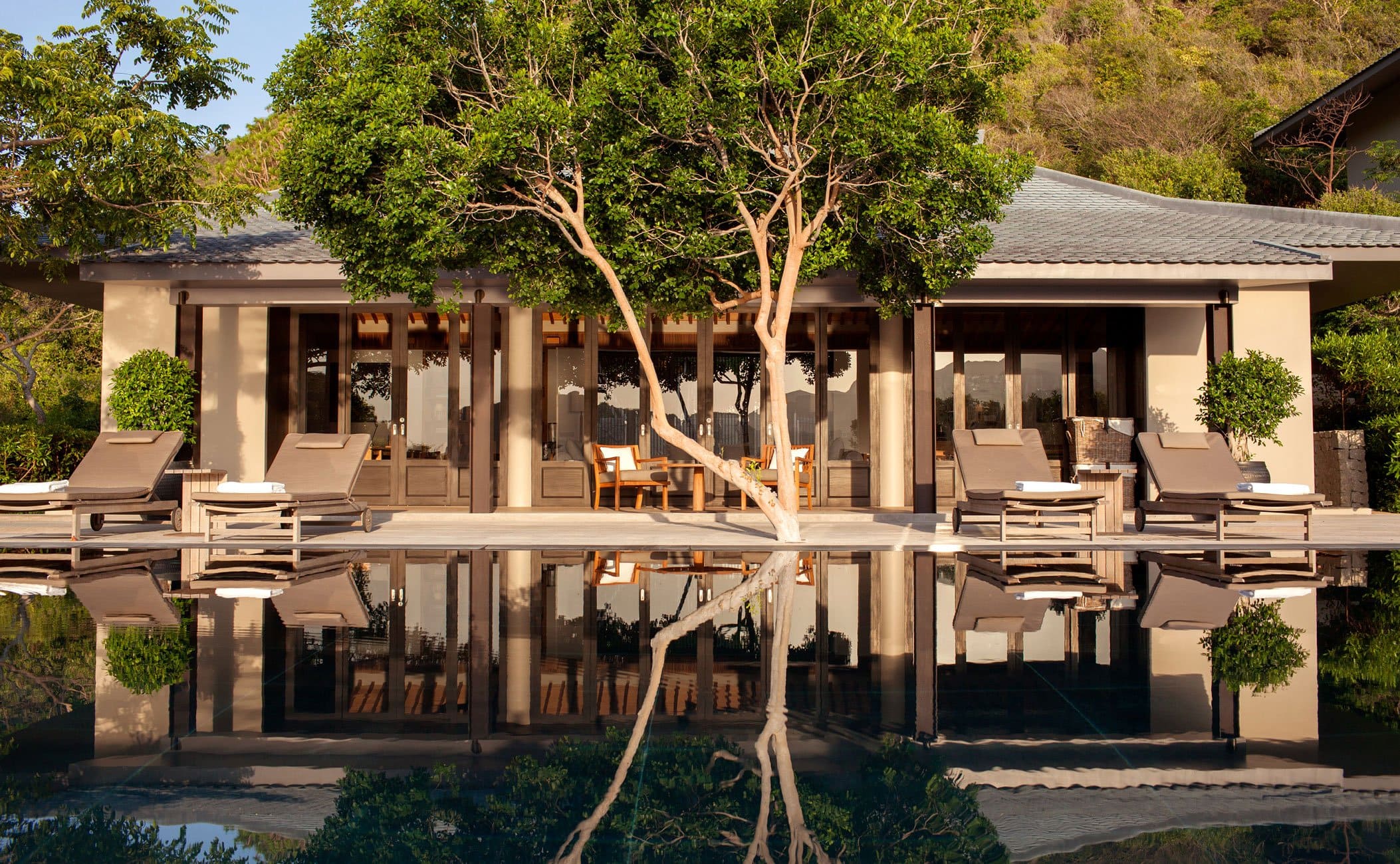 Ocean pool pavilion. Терраса с открытым персональным бассейном, спальня с гостиной зоной (кровать king-size), ванная комната с ванной и душевой кабиной. Вид на море.