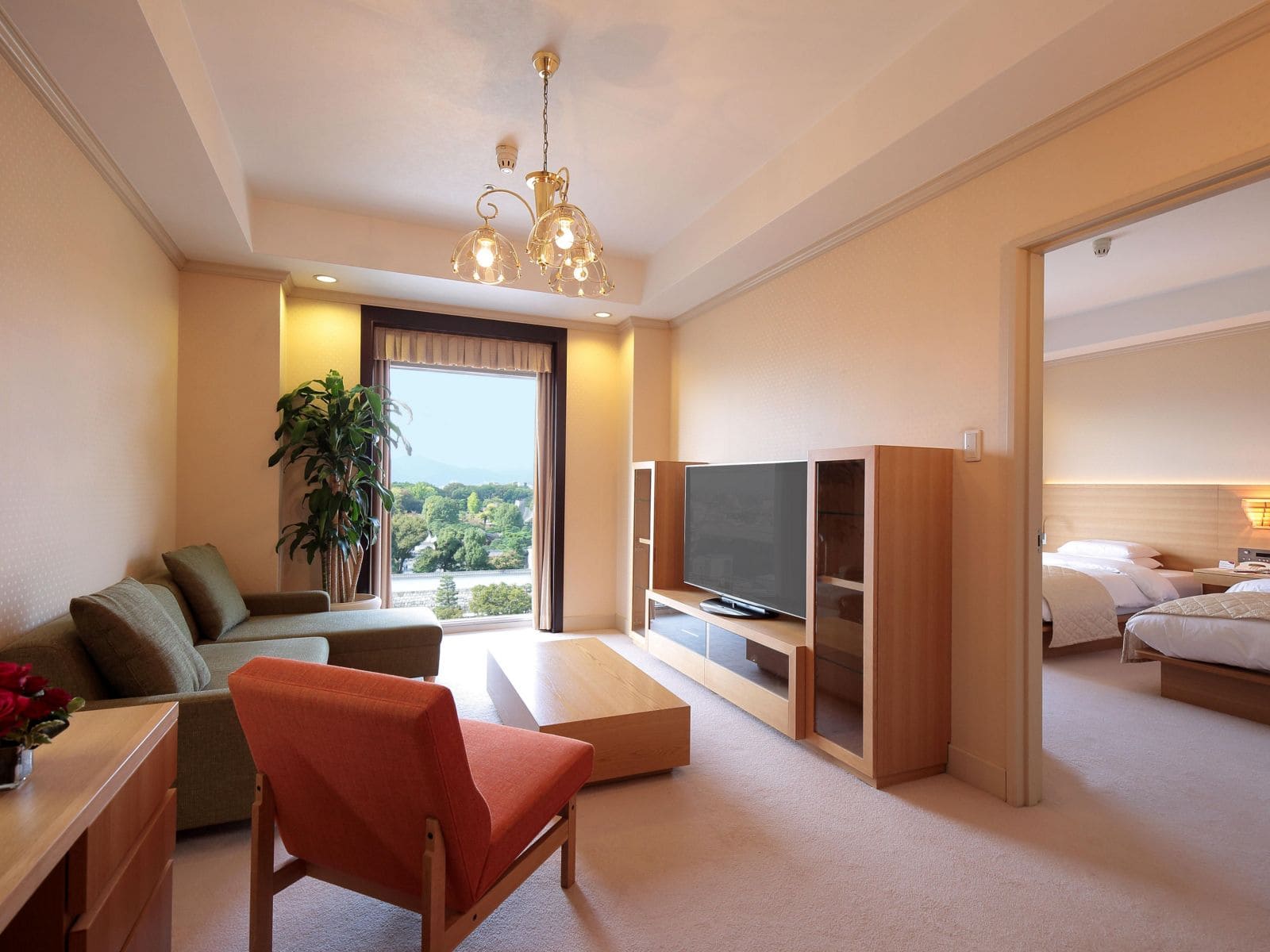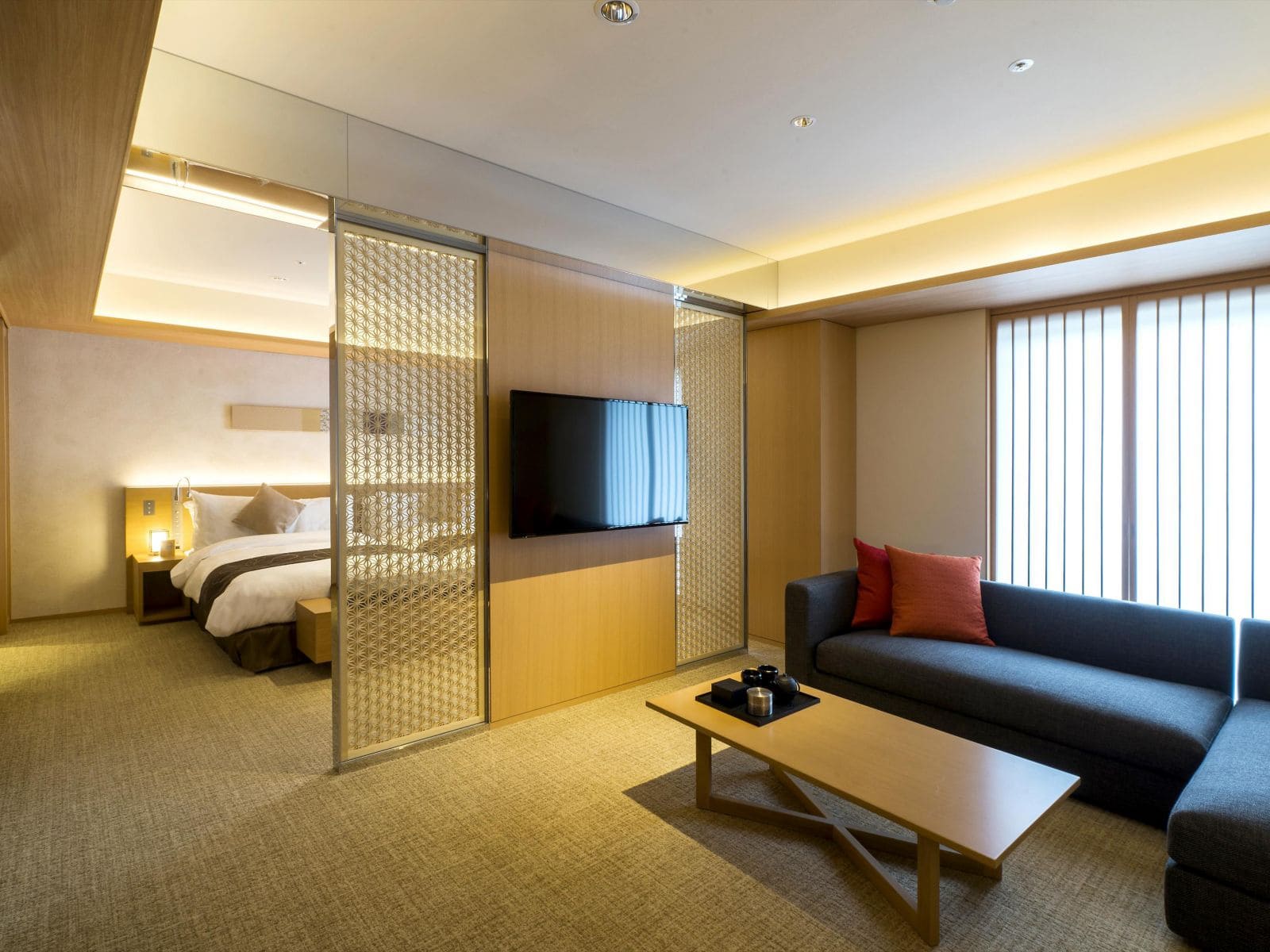 Japanese Suite (60 кв. м). Номер оформлен в традиционном японском стиле. Здесь есть спальня с кроватями-футонами, гостиная, ванная комната.