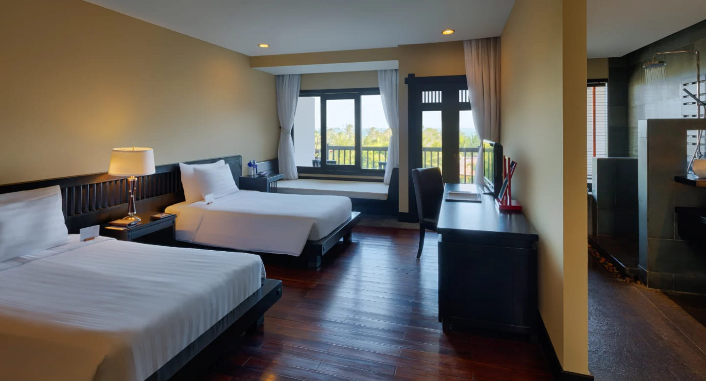 Оформление курортного отеля Anantara Mui Ne гармонично сочетает в себе как традиционные вьетнамские элементы, так и современные дизайнерские решения. Номера располагают большим выбором подушек, сейфом, мини-баром, тропическим душем и очень просторной ванной, отделанной камнем. В спа-салоне гостям предложат различные спа и косметические процедуры, массаж. Из тренажерного зала отеля открывается вид на тихий сад. Кроме того, гости могут посетить близлежащую рыбацкую деревушку Муи Не. В ресторане курортного отеля можно заказать блюда местной кухни и полюбоваться прекрасным видом на море. По просьбе гостей могут быть приготовлены специальные блюда.