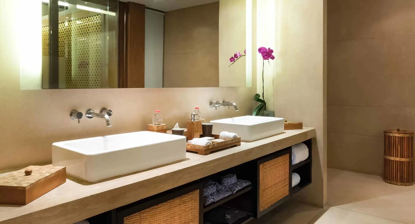 Anantara pool access suite (80 кв. м). Терраса с джакузи на открытом воздухе, спальня с гостиной зоной (кровать king-size), гардеробная, ванная комната с ванной и душевой кабиной с функцией «тропический дождь». Дополнительно: мини-бар. Расположены на первом этаже. Прямой выход к бассейну.