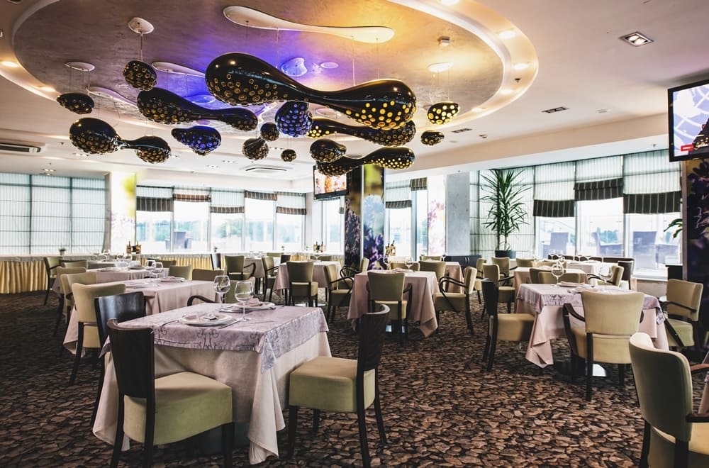 140 номеров, 4 ресторана, 3 бара, открытый бассейн (с мая по октябрь), закрытый подогреваемый бассейн, джакузи, аквапарк, спа-центр (русская баня, финская сауна, римская парная, хамам, холодная купель, массаж, стоунтерапия, ароматерапия, рефлексология, процедуры для лица и тела), медицинский центр, салон красоты, тренажерный зал, аквааэробика, 2 освещаемых теннисных корта, площадка для пляжного волейбола, площадка для мини-футбола, виндсерфинг, катамараны, гидроциклы, водные велосипеды, водные лыжи, бизнес-центр, конференц-зал, 5 комнат для переговоров, Wi-Fi доступ в Интернет, детская игровая комната, парковка.