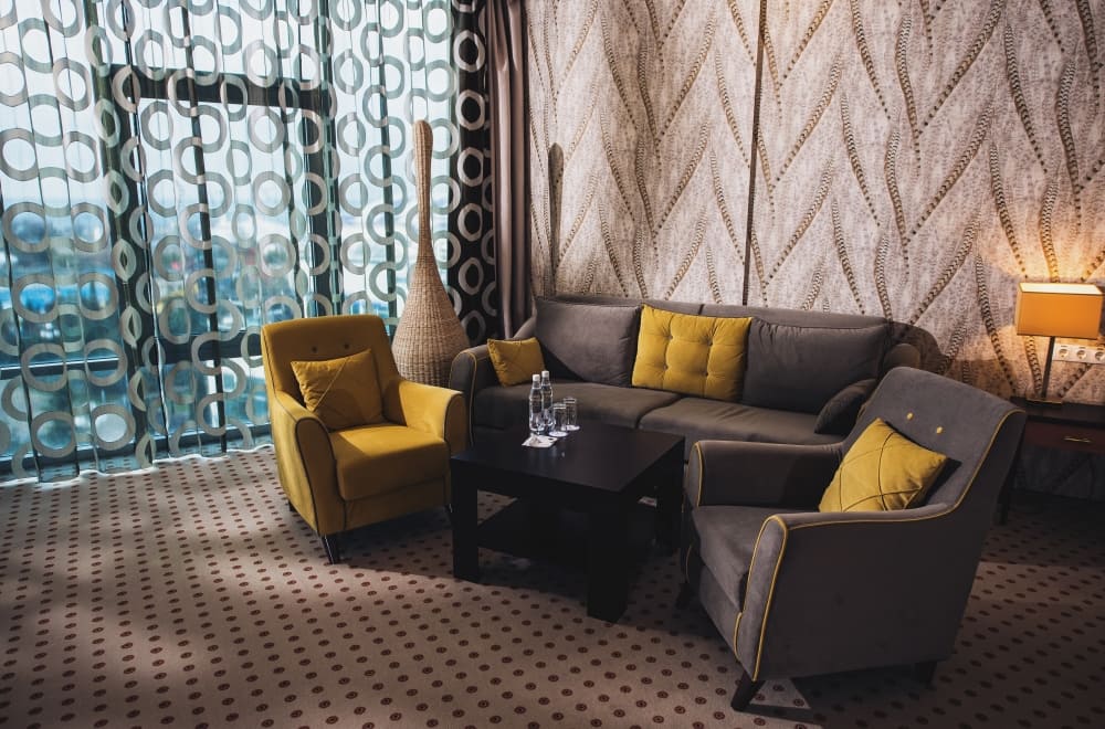 Люкс с видом на город (Premier suite city view) (71 кв. м). Гостиная, спальня с кроватью king-size, ванная комната. Вид на город.