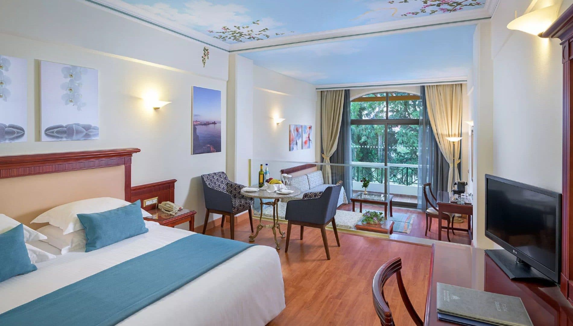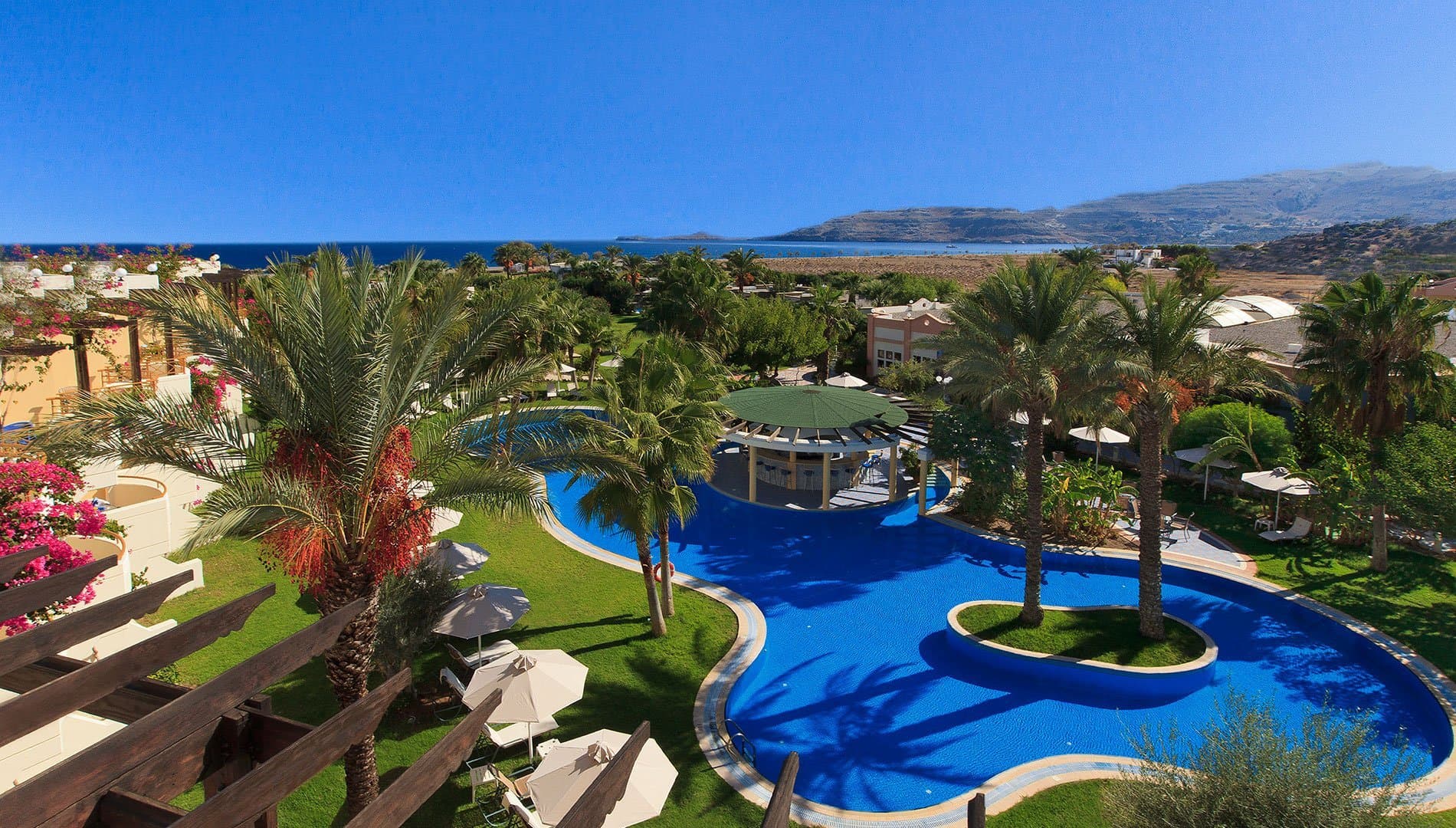 Элегантный отель расположился на восточном побережье острова Родос. Внешний облик Atrium Palace Thalasso Spa Resort & Villas отражает насыщенную событиями историю острова – классические каноны античной архитектуры сочетаются с византийскими и итальянскими мотивами, а также строительными традициями крестоносцев. Во внутреннем дворике разбит живописный сад с прудами и водопадами. Территорию отеля украшает впечатляющий комплекс бассейнов с каскадами, мостиками и залитыми солнцем террасами, окруженный яркой зеленью газонов и экзотических пальм. В отеле тренажерный зал, 2 освещаемых теннисных корта, настольный теннис, волейбол, баскетбол, бильярд, мини-гольф, дайвинг, детская игровая площадка, 2 конференц-зала (до 180 человек), услуги няни. Неподалеку от отеля: водный спорт.