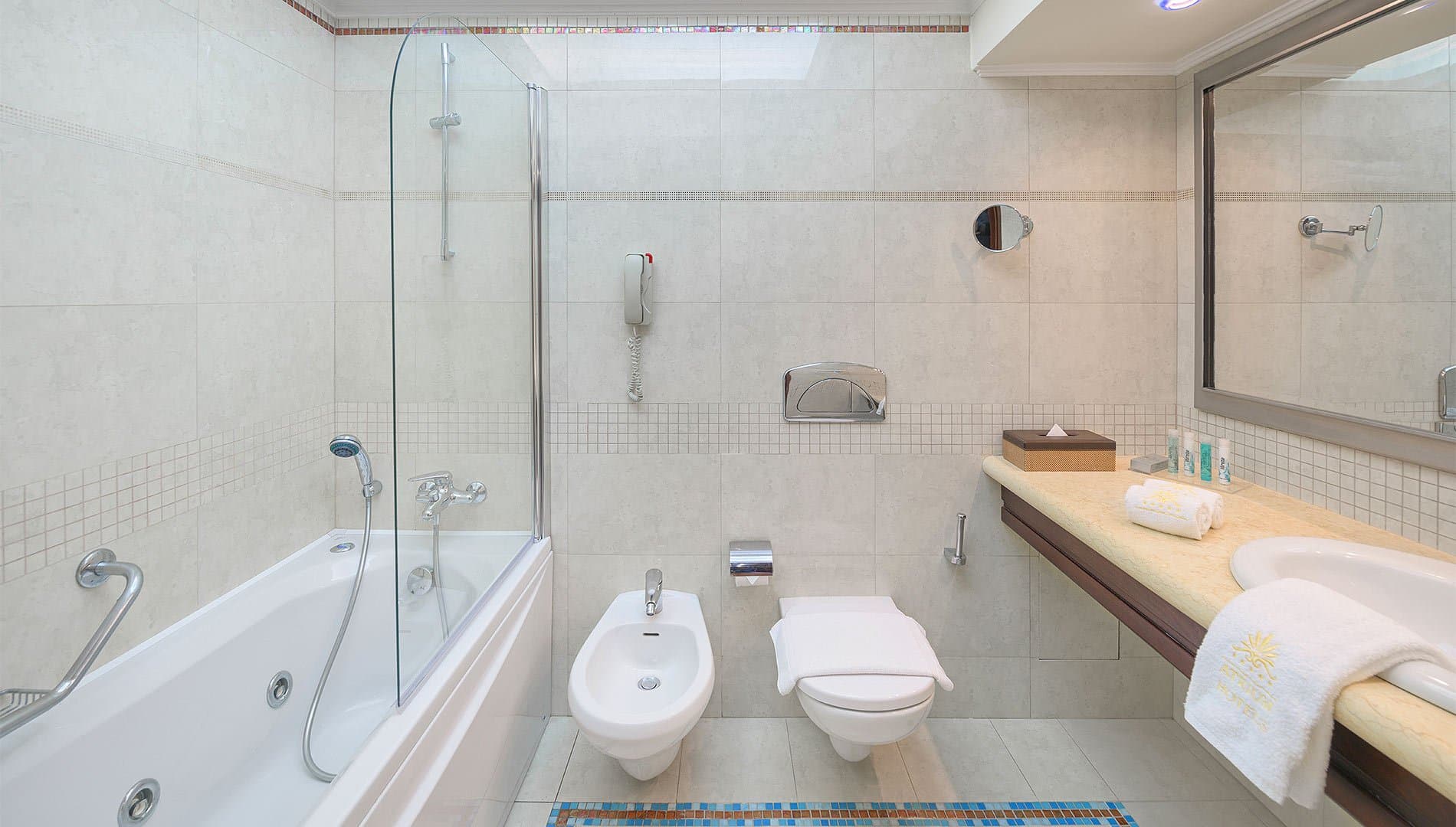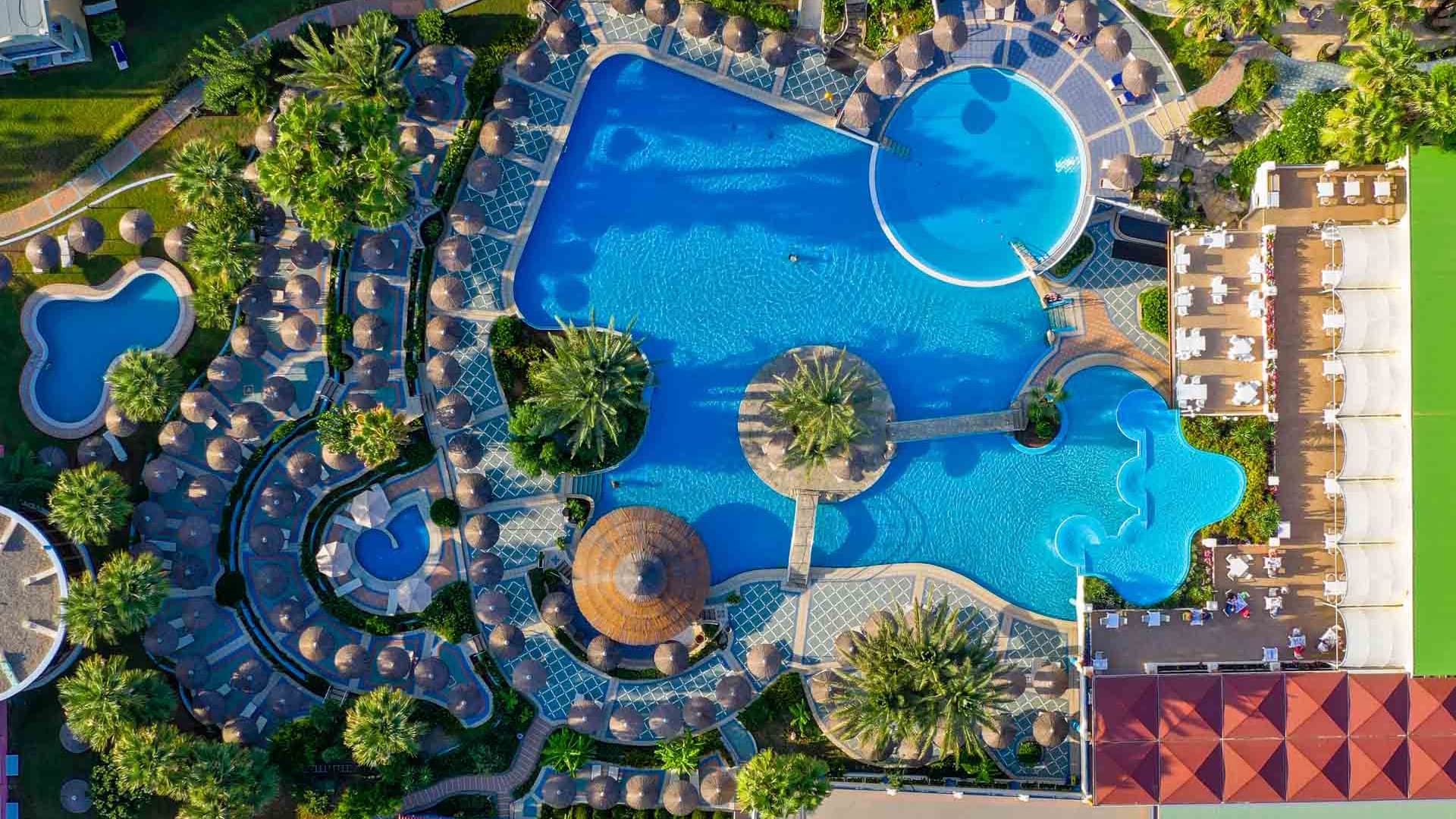 5 ресторанов, 4 бара, 7 открытых бассейнов (в том числе детский бассейн), SPA-центр (закрытый бассейн с морской водой, сауна, хамам, массаж, гидромассаж, талассотерапия, ароматерапия, скрабы, обертывания, программы по уходу за лицом и телом).