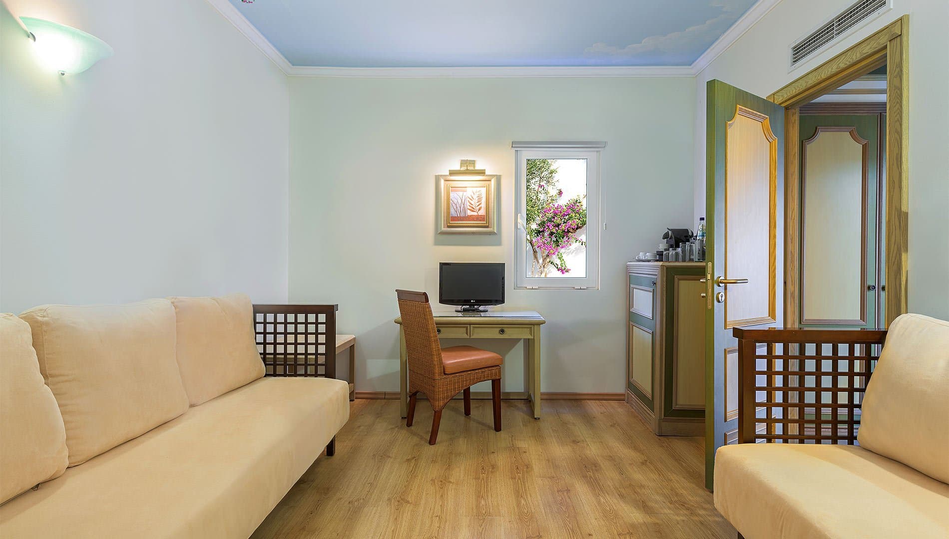Кондиционер, спутниковое телевидение, WI-FI доступ в Интернет, телефон, телефон в ванной комнате, мини-бар, оборудование для приготовления чая и кофе, сейф, фен, халаты, тапочки.
