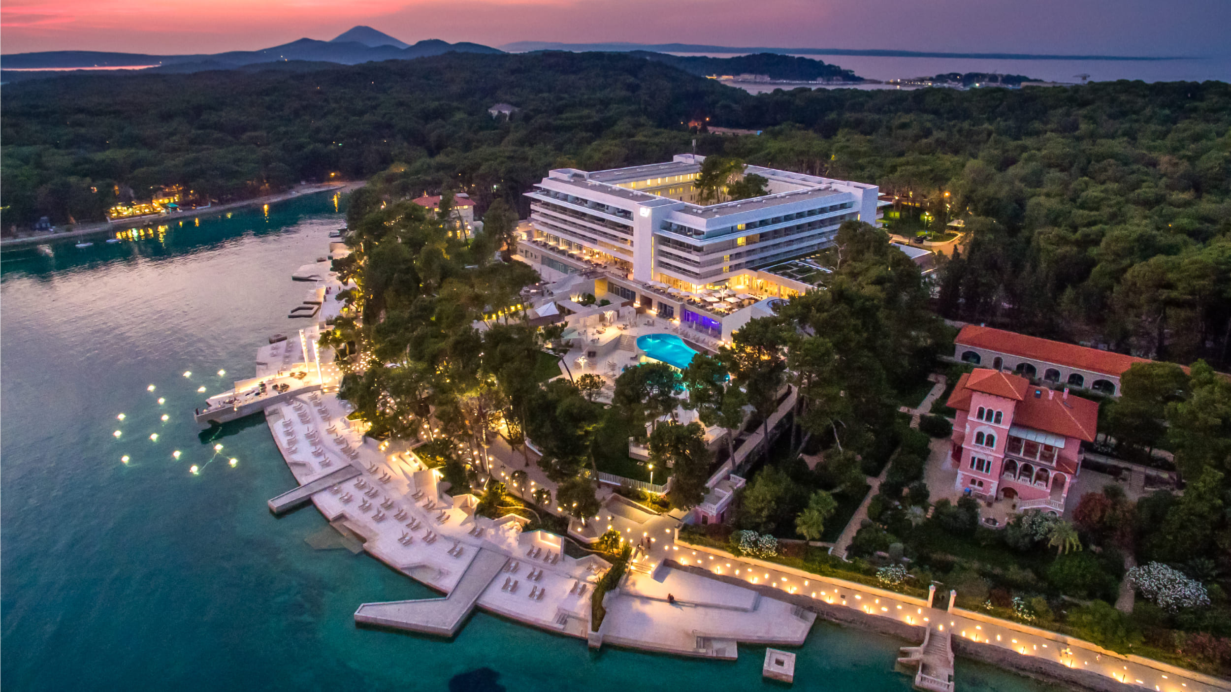 К услугам гостей отеля Bellevue новая спа-клиника, 2 ресторана средиземноморской и японской кухни, лаундж-бар и 2 бассейна. Он расположен на оздоровительном курорте Мали-Лошинь, в окружении сосен. На пляже можно пользоваться шезлонгами.
