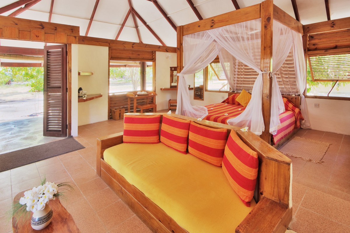 Шале с кроватью размера «king-size», угловой гостиной с диванами, вентилятором, сейфом и опциональной противомоскитной сеткой. В распоряжении гостей душ, вода в котором подогревается с помощью солнечной энергии. Вид на сад.
