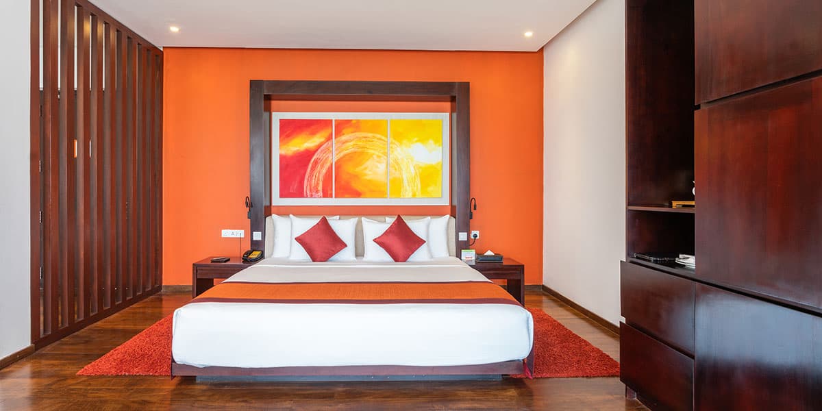 140 Superior Room (43 м2, макс. 3 или 2+1 чел.). Уютные однокомнатные номера с хорошим ярким декором. Балкон или терраса. Вид на океан.