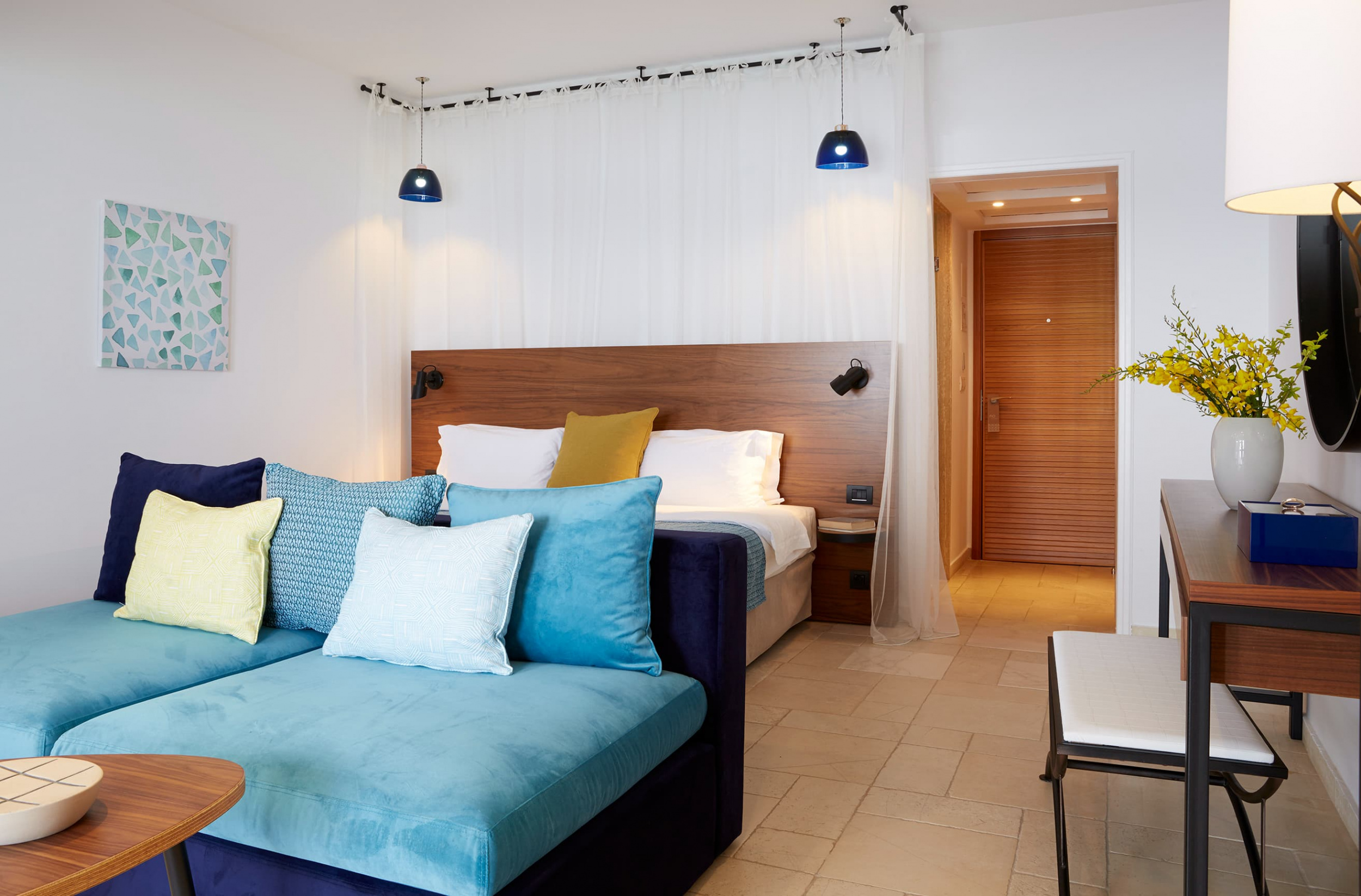 Кондиционер, спутниковое телевидение, Wi-Fi доступ в Интернет, телефон, сейф, мини-бар, кофемашина Nespresso (кроме Standard room), фен, халаты, тапочки.