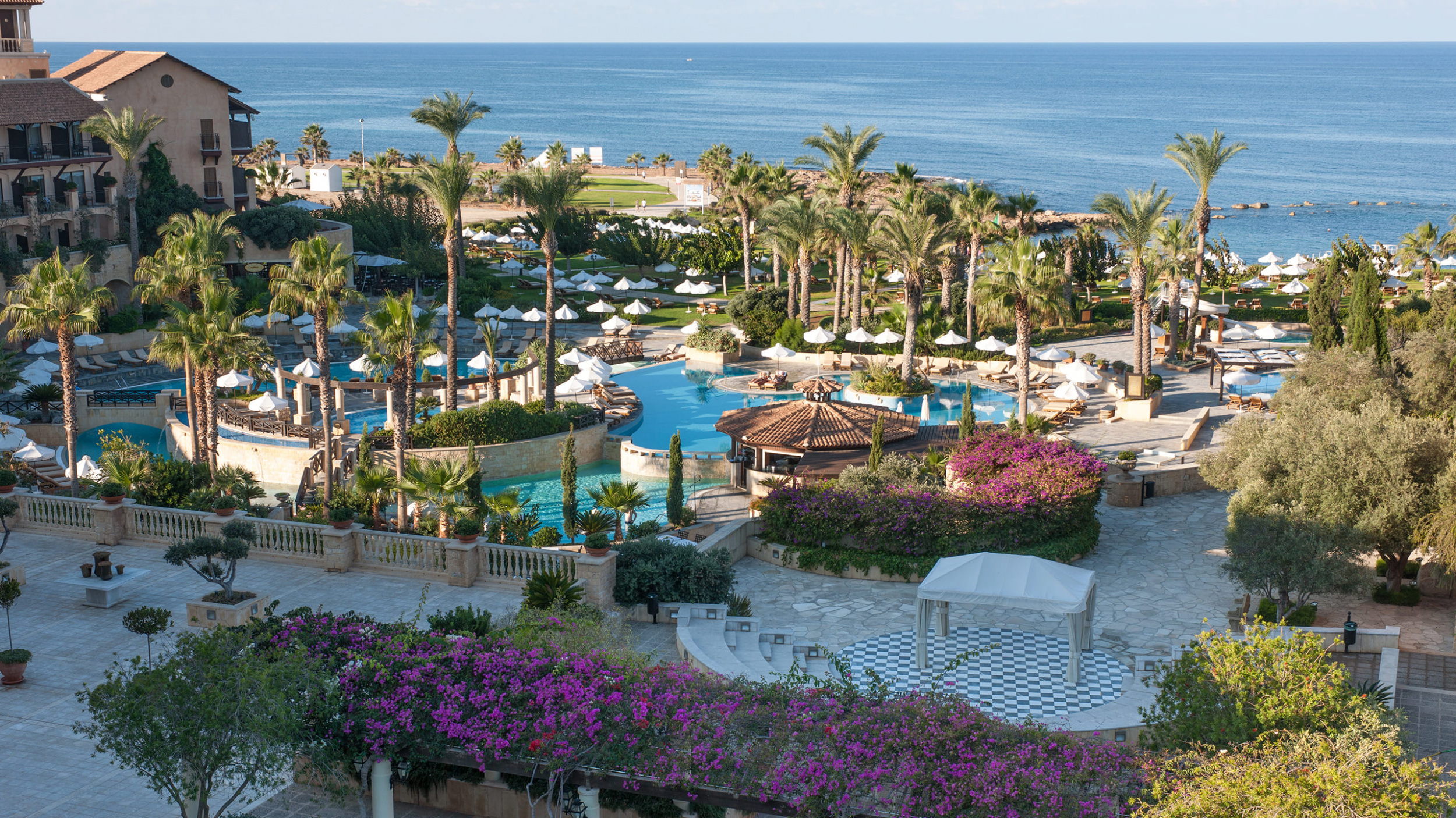 Отель Elysium удобно расположен всего в нескольких шагах от живописной гавани Пафоса. На всей территории бесплатный WI-FI доступ в Интернет, библиотека, амфитеатр, детская игровая площадка, детский клуб, услуги няни, услуги консьержа, 2 освещаемых теннисных корта, настольный теннис, дайвинг-центр, банкетный зал, 3 конференц-зала, бизнес-центр.