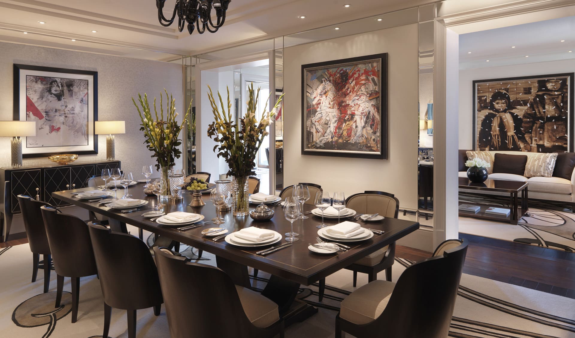 Premier suite (166-198 кв. м). Прихожая, гостиная с обеденной зоной (стол на 8 персон), спальня с кроватью king-size, ванная комната с ванной и душевой кабиной, гостевой туалет. Расположены с 4 по 6 и с 8 по 10 этаж. Вид на Большой театр, Государственную Думу, Александровский сад и Манежную площадь.