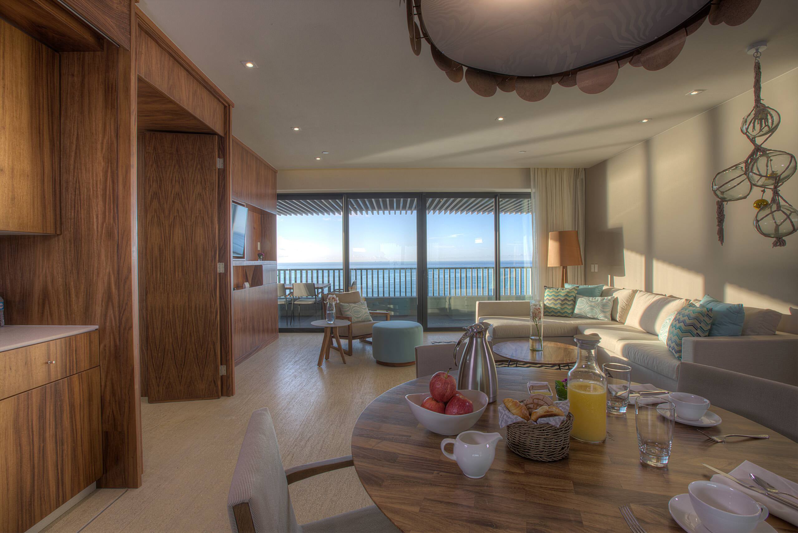 Номерной фонд отеля состоит из 314 комфортабельных комнат, оформленных в «морской» бело-синей гамме и оснащенных балконами, с которых открываются превосходные виды на океан и сады. Для самых взыскательных гостей предусмотрены клубные привилегии.