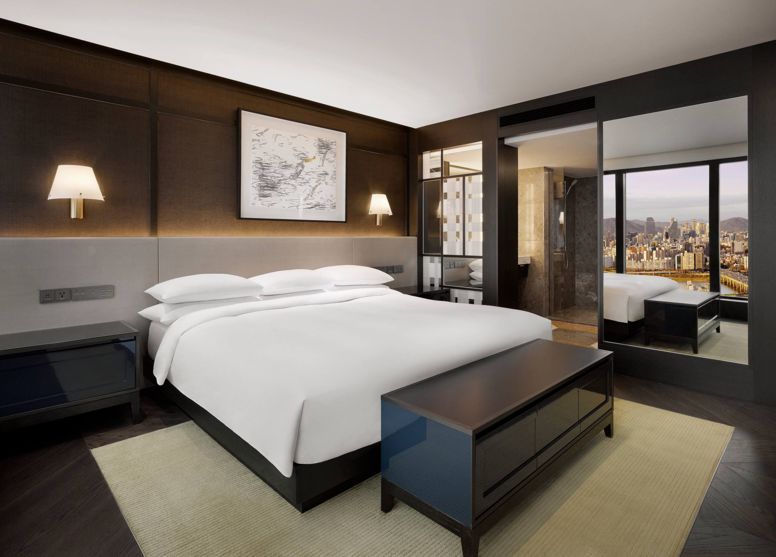 Похожий на стеклянный замок в серебряной оправе, отель Grand Hyatt Seoul гордо стоит на самой вершине горы Намсан – одной из достопримечательностей Сеула, с которой связаны многие исторические события древней корейской столицы. Вокруг отеля раскинулся обширный живописный парк, прогуливаясь по которому можно любоваться многочисленными водопадами, а также великолепной панорамой города и реки Хан.