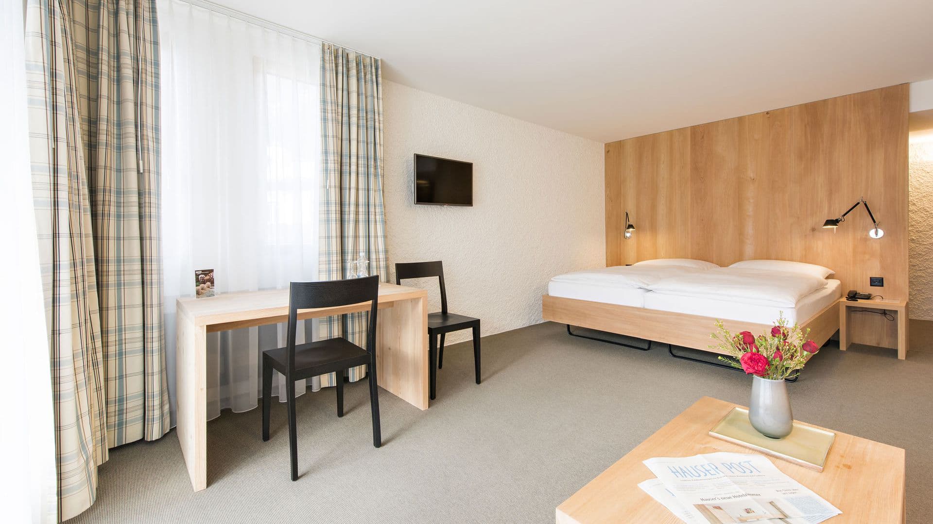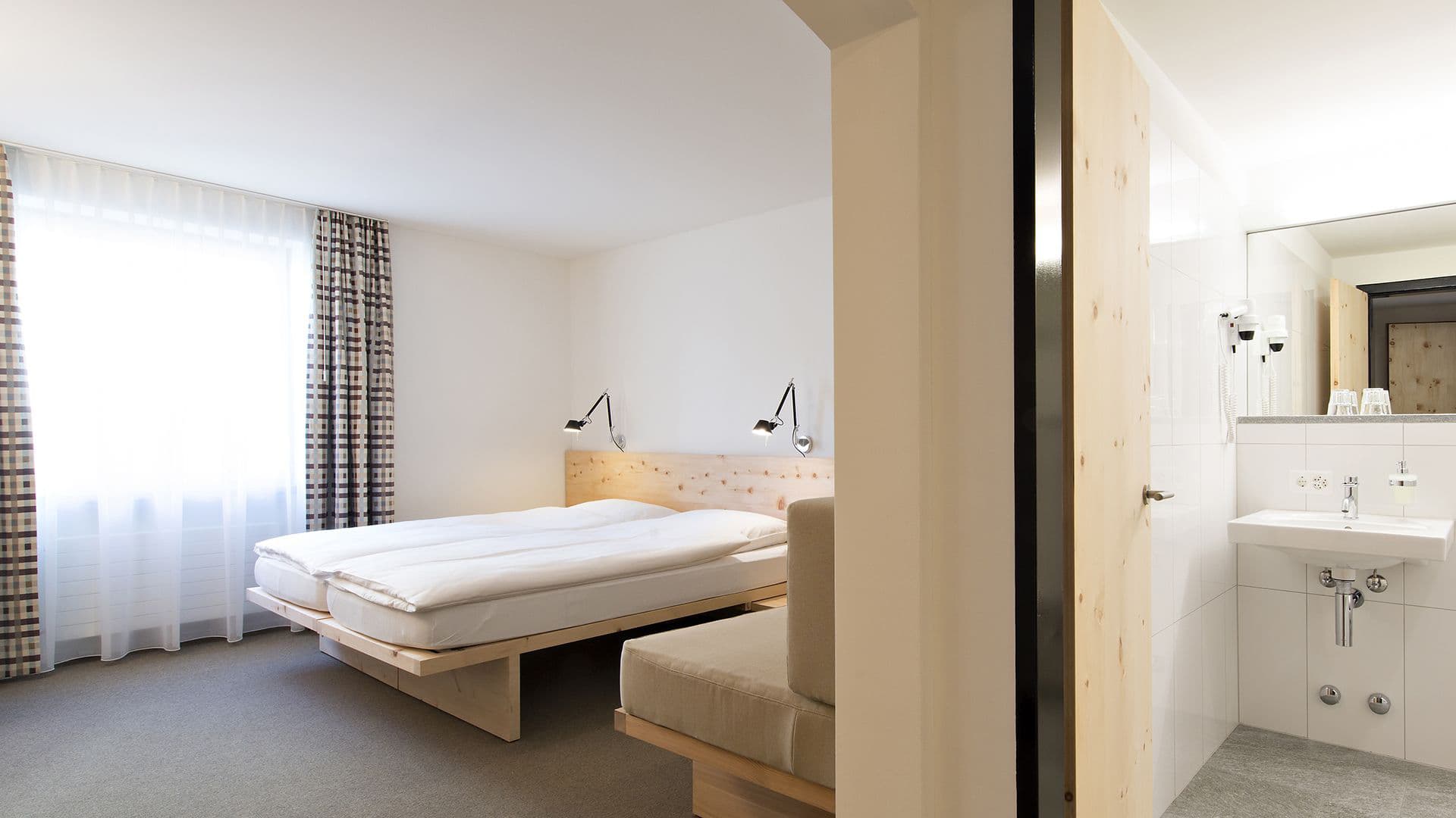 Family room (40кв.м). Окна номера выходят на юг. К услугам гостей деревянная мебель, гостиный уголок, телевизор, рабочее место и ванная комната с душем или ванной, облицованная гранитом Bergeller.
