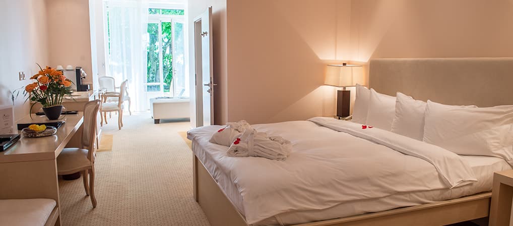58 номеров, спа-центр, крытый бассейн, джакузи, сауна, парная, фитнес-зал, горные лыжи, парапланеризм, гольф, теннис, велоспорт, плавание, парусный спорт, пешие походы, верховая езда, ресторан и бар, 3 зала для конференций и банкетов, бизнес-услуги, автомобильная парковка, услуги консьержа, услуги прачечной и химчистки.