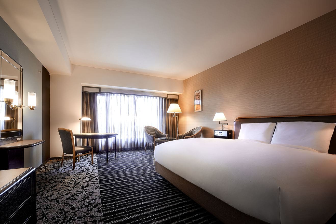 Superior Double Room (30 кв. м). Спальня с большой двуспальной кроватью, ванная комната с ванной и душем. Из окон можно любоваться видами города или замком Осаки.