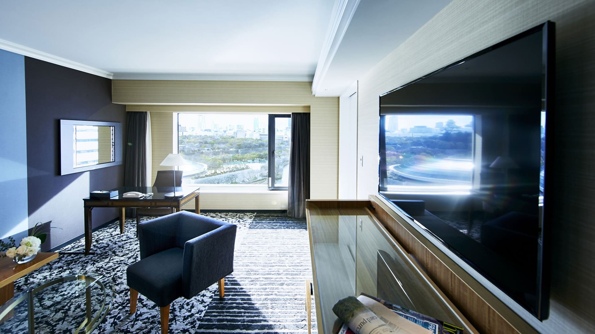 Superior Suite (77 кв. м). Просторная гостиная, спальня с двумя отдельными кроватями, гардеробная, ванная комната. Вид на замок Осаки. Гости данных номеров получают особые привилегии.