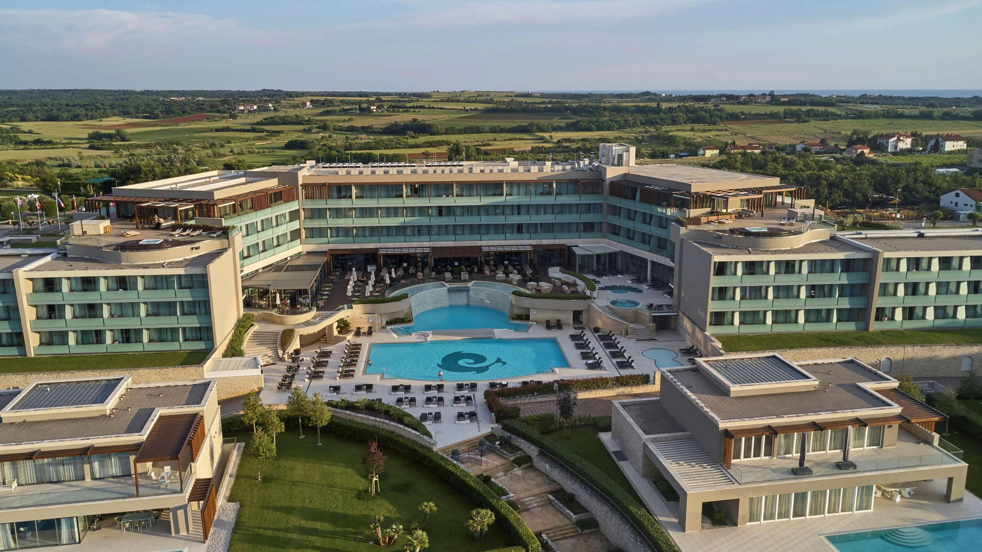Presidential suitе – Jure Grando (263 кв. м): терраса (568 кв. м), гостиная с обеденной зоной и камином, спальня c кроватью king-size, ванная комната с гидромассажной ванной и душевой кабиной. Дополнительно: домашний кинотеатр. Вид на море и Альпы. Возможно объединение с номером категории Junior suite. В оформлении номера преобладают темные тона.