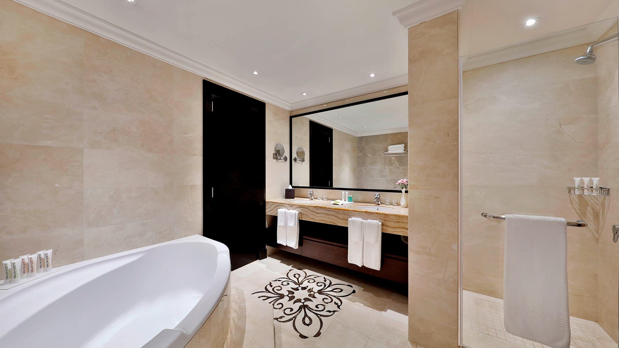 В каждом из них установлен телевизор с плоским экраном и сейф, а также предоставляется бесплатный Wi-Fi. Из всех номеров открывается панорамный вид на Персидский залив или городской пейзаж Дубая.