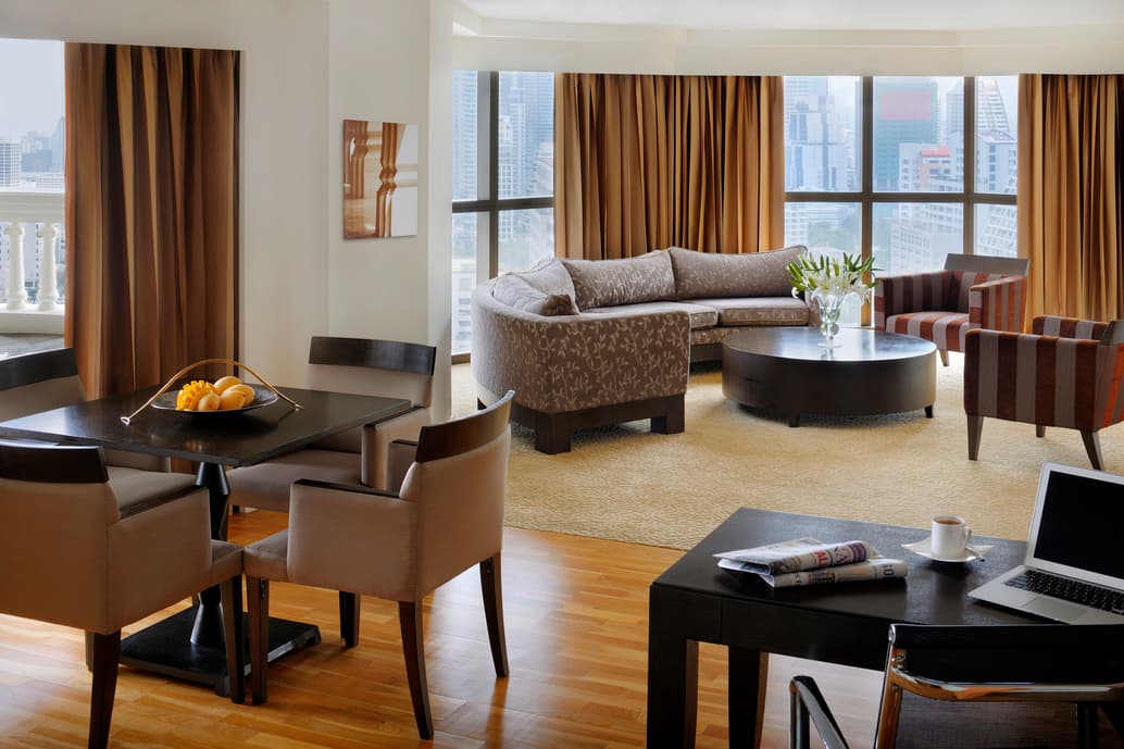 Отель Lebua at State Tower с потрясающим видом на город и реку находится в Бангкоке. К услугам гостей хорошо обставленные люксы с отдельной спальней, гостиной и мини-кухней. На всей территории отеля предоставляется бесплатный Wi-Fi. Отель славится своими превосходными ресторанами, включая ресторан Mezzaluna, отмеченный 2 звездами Мишлен, превосходный ресторан паназиатской кухни Breeze, бар Sirocco и бар Sky. Из всех ресторанов и баров открывается живописный вид на реку и Бангкок. В отеле работает несколько баров, такие как lebua No.3 и новые современные модные бары Gin and Caviar & Vodka Bar, Flute - Champagne и Chivas - alfresco 64. Каждый люкс оснащен телевизором с плоским экраном, технологией IPTV и DVD-плеером. Просторная собственная ванная комната укомплектована бесплатными туалетно-косметическими принадлежностями. Гости могут посетить открытый бассейн-лагуну или заказать расслабляющий массаж. Кроме того, в отеле есть хорошо оборудованный тренажерный зал, паровая баня и сауна. По утрам в кафе Mozu у бассейна подают фирменный завтрак lebua, состоящий из блюд различных кухонь мира, включая японскую, тайскую, азиатскую, индийскую, арабскую и западную.