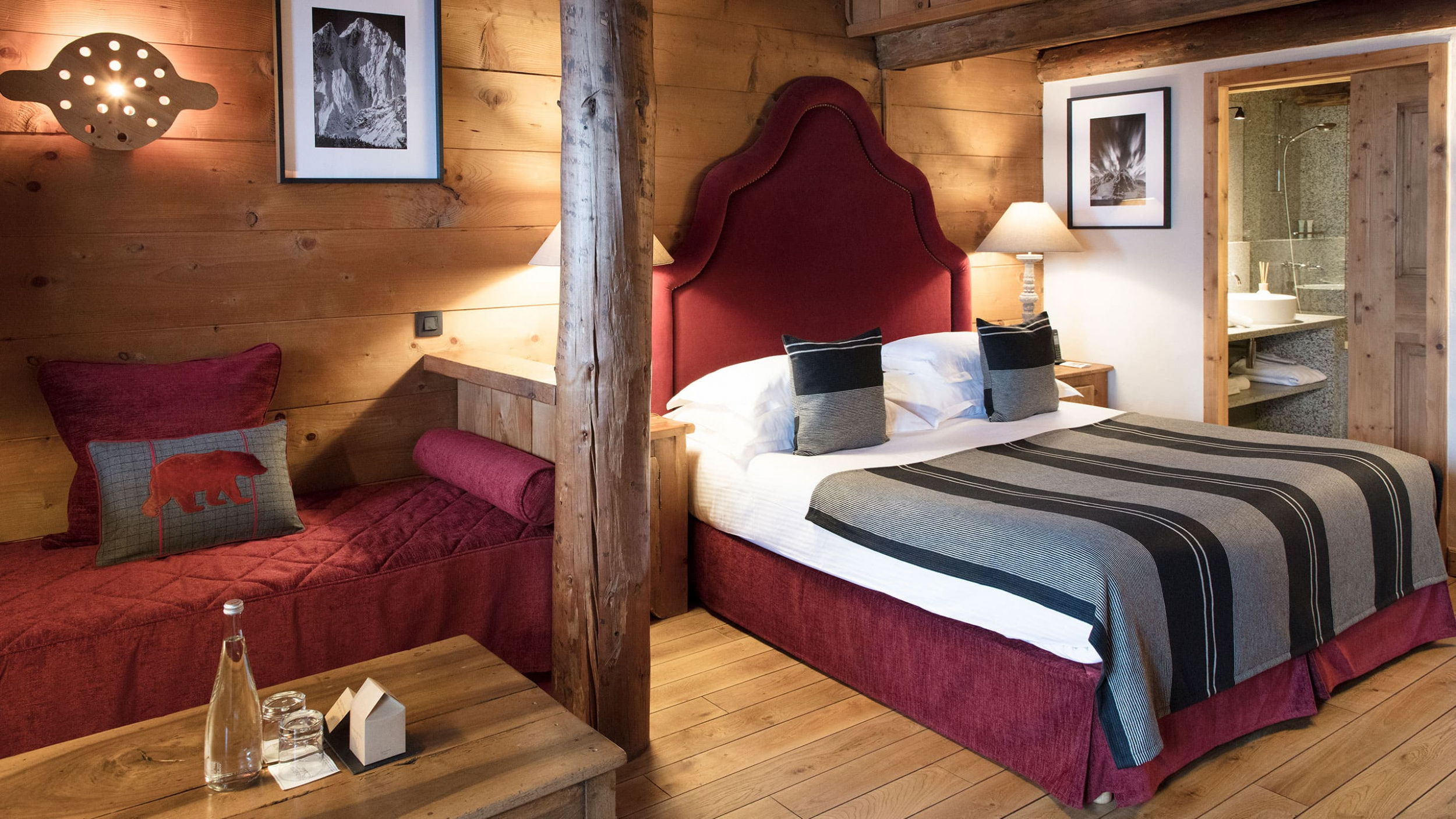 Mont-Blanc suite (55-60 кв. м). Терраса или балкон, спальня с гостиной зоной, ванная комната с ванной и душем. Мансардные потолки. Вид на южную или юго-восточную сторону.