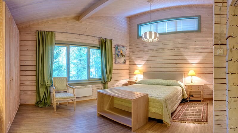 Коттедж «Бизнес»*** (102 м.кв.): Максимально 6 человек + 2 дополнительных места, три спальни (3 двуспальные кровати (1 кровать с водяным матрасом)), две ванные комнаты (душевые кабины), гостиный зал (телевизор, DVD / музыкальный центр), мини-кухня (холодильник, микроволновая печь, электрический чайник), WI-FI, телефон, ТВ (НТВ+), сейф, потолочный вентилятор, стоянка на 2 а/м.