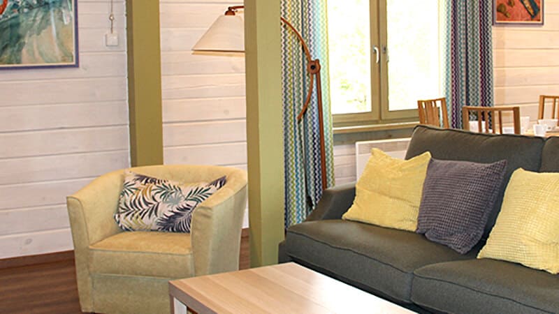 Коттедж «Комфорт»*** (102 м.кв.): Максимально 6 человек + 2 дополнительных места, три спальни (3 двуспальные кровати), две ванные комнаты (ванные), гостиный зал (телевизор, DVD / музыкальный центр), мини-кухня (холодильник, микроволновая печь, электрический чайник), ТВ (НТВ+), WI-FI, телефон, сейф, потолочный вентилятор, стоянка на 2 а/м.