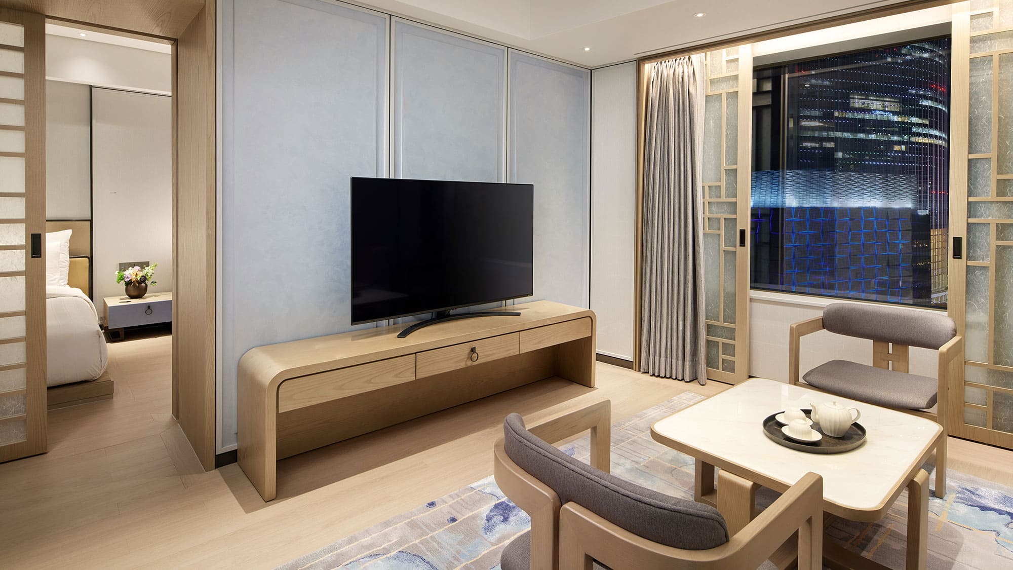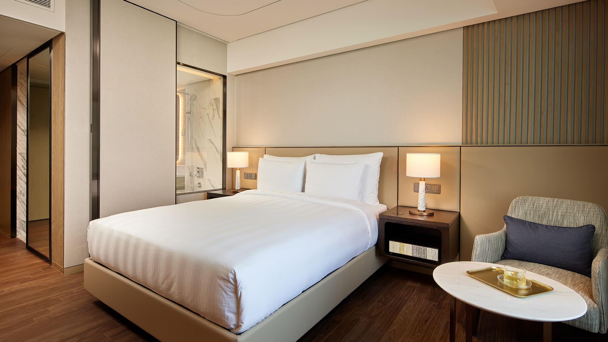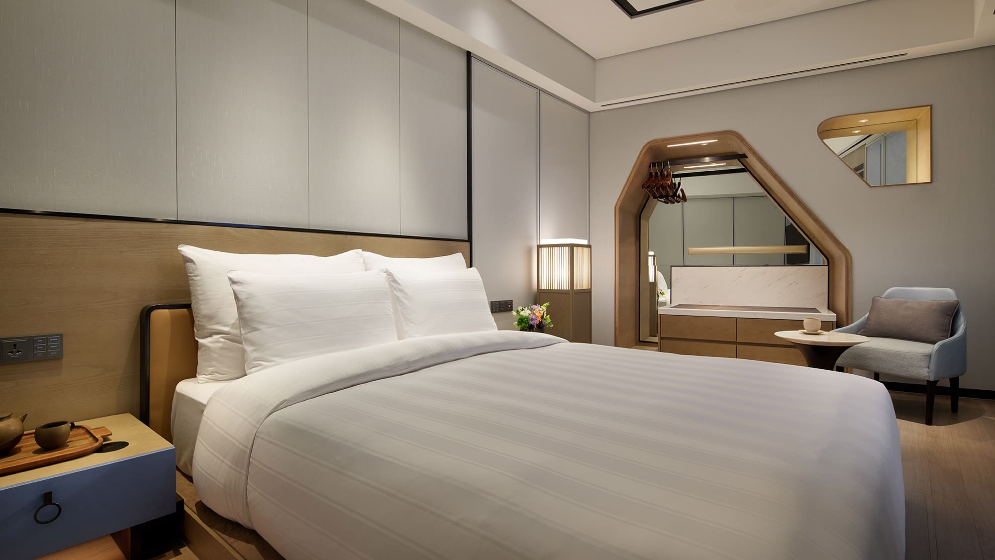 Character corner suite (55 кв. м). Спальня с гостиной зоной (двуспальная или две отдельные кровати), ванная комната. Дополнительно: DVD-плеер, игровая приставка Playstation 3, тапочки. Расположены в угловой части здания. Вид на развлекательный парк и город.