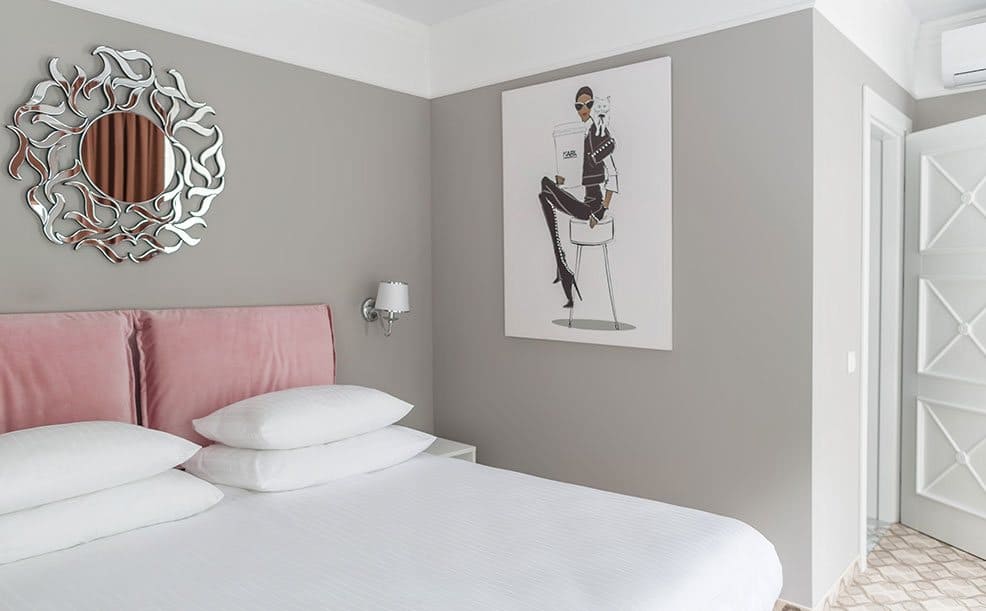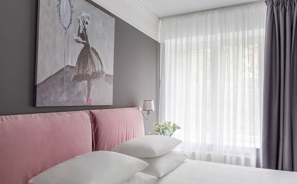 Делюкс Комфортабельные номера площадью 40 метров состоят из гостиной, гардеробной и спальни. Уникальный светлый и просторный интерьер каждого номера дополнен дизайнерской мебелью, зеркалами и оригиналами авторских картин.