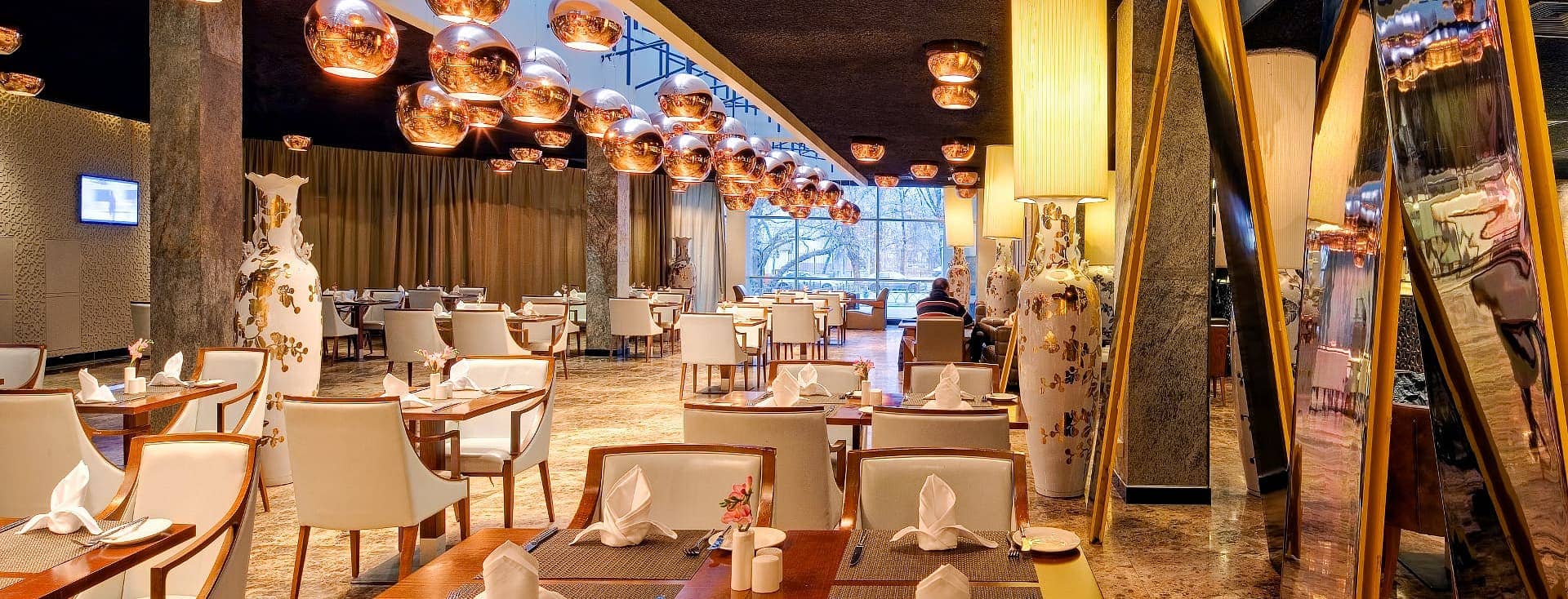 Presidential suite (161-207 кв. м): гостиная с обеденной зоной, мини-кухня, гардеробная, 2 спальни, 2 ванные комнаты с ванной и душевой кабиной или джакузи (в одном из номеров), гостевой туалет.