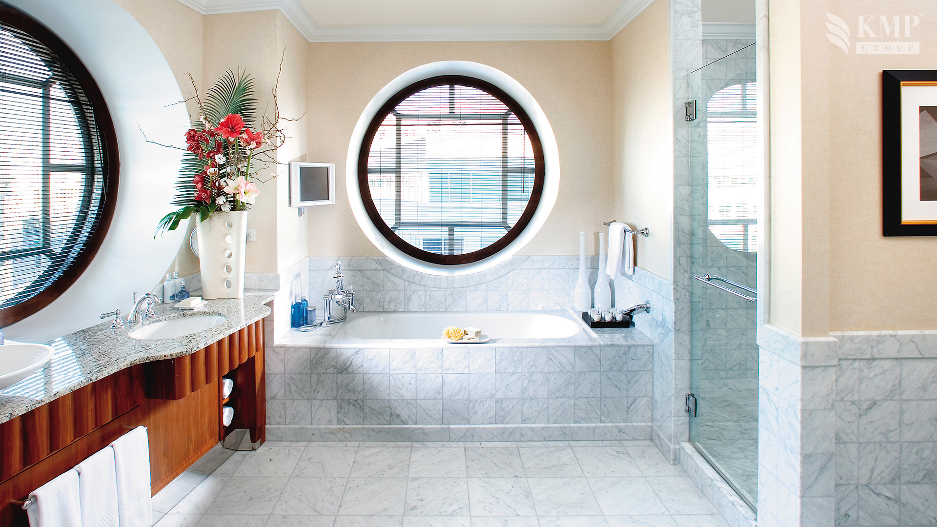Diplomatic suite (70 кв. м). Гостиная, спальня с кроватью king-size, гардеробная, ванная комната с ванной и душевой кабиной, гостевой туалет. Вид на залив. Гости данных номеров имеют особые привилегии.