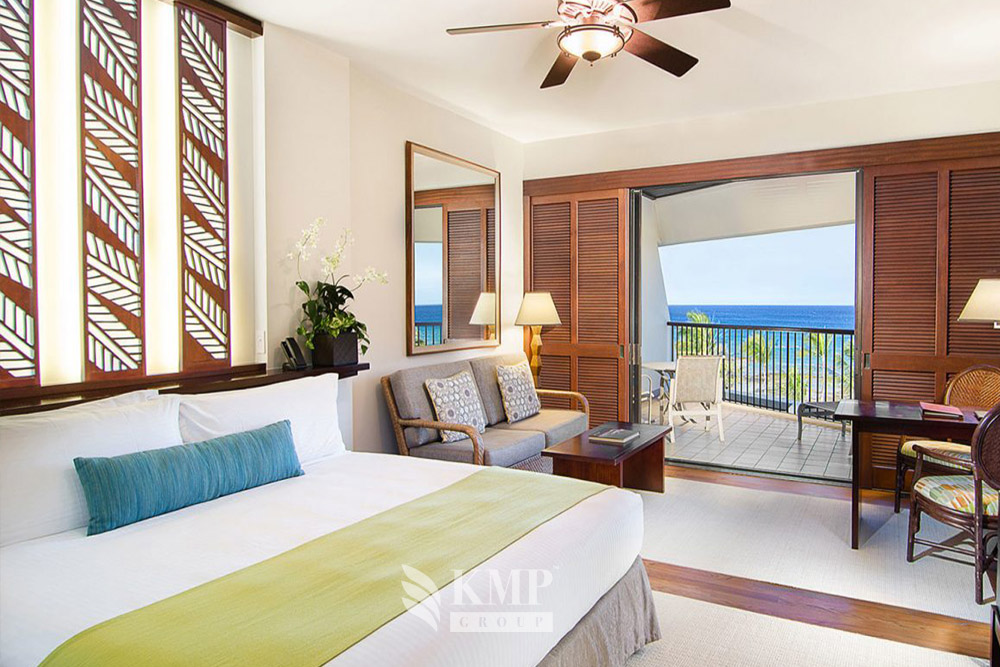 Ocean Front Room (52 кв. м). Элегантные комфортабельные номера. Небольшая зона отдыха с двухместным диванчиком и кофейным столиком, рабочий стол. Вид из номера на океан.