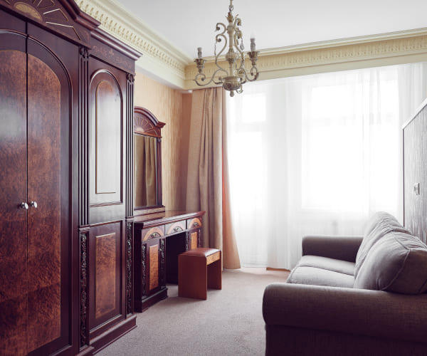 Люкс Большие двухкомнатные номера обставленные эксклюзивной французской мебелью. В данной категории номера есть все самое необходимое как для комфортного отдыха, так и проведения деловых встреч.