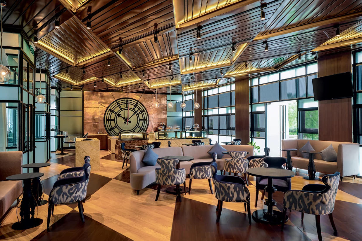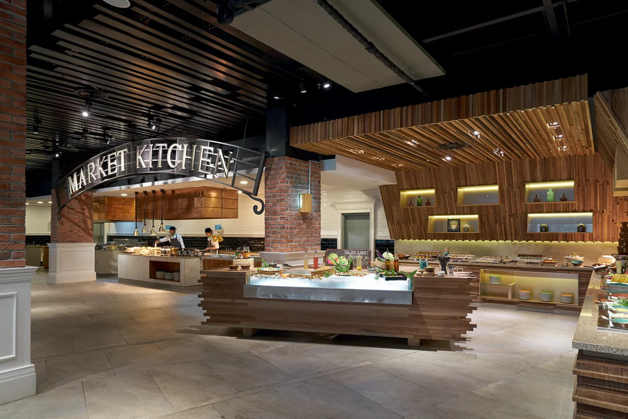 Темасья предлагает блюда для обедов и фьюжн в течение всего дня, а Бара специализируется на барбекю и ближневосточной еде. Мавританский Redup подает экзотические напитки и шашлыки. Сладости, кофе и чай премиум-класса доступны в Beranda и Sira.