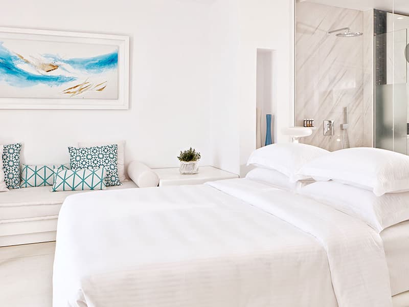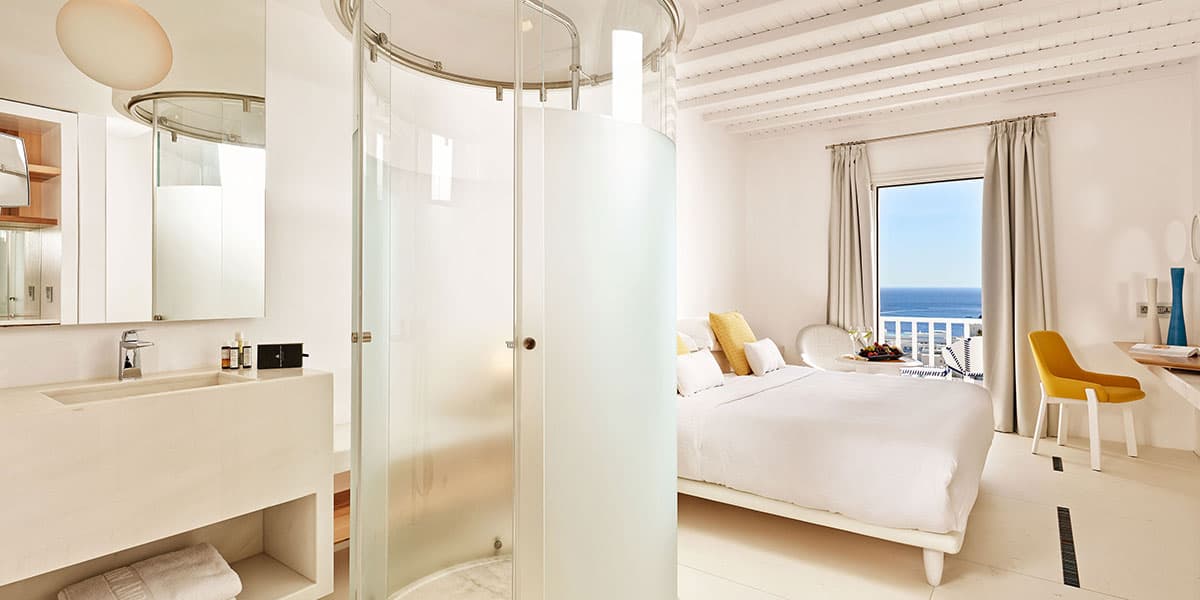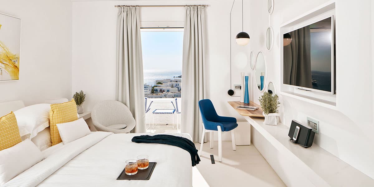95 номеров, вилла, 2 ресторана, бар, открытый бассейн, SPA-центр (3 закрытых бассейна для гидротерапии. сауна, парная, массаж, процедуры по уходу за лицом и телом), тренажерный зал, йога, пилатес, бизнес-центр, услуги няни (по запросу), парковка. Неподалеку от отеля: водные виды спорта, дайвинг. Внимательный сервис и индивидуальный подход к каждому клиенту – фирменная черта цепочки The Myconian Collection, включающей в себя лучшие гостиницы острова.