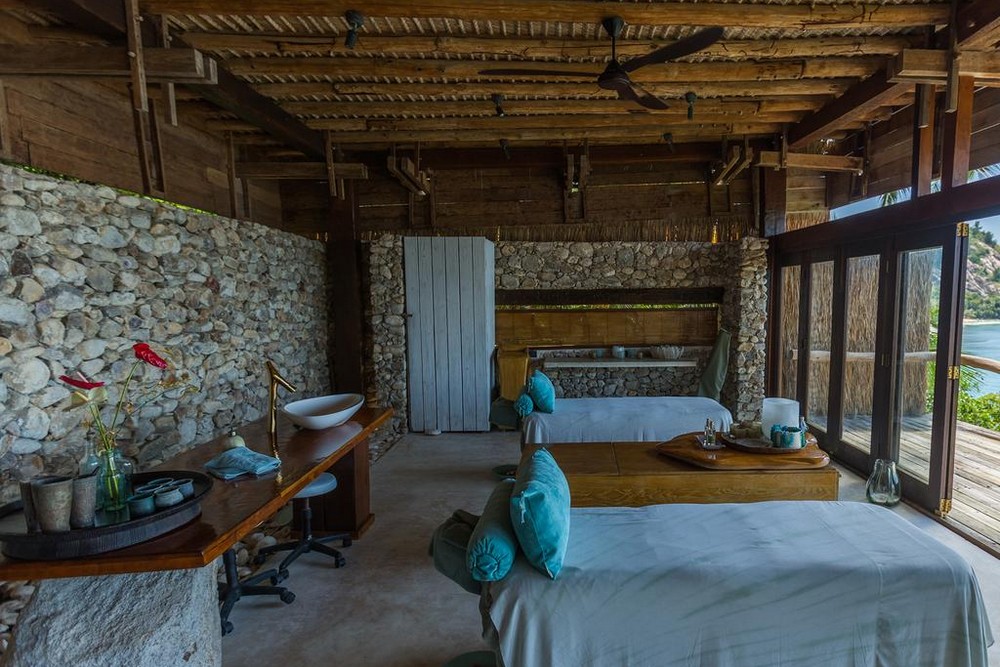 Каждая уединенная вилла выстроена из дерева, местного камня и стекла сейшельскими и африканскими мастерами. В числе удобств 2 спальни: главная и вторая спальня с гостиной и кабинетом для тех, кто путешествует с детьми. Вторая спальня представляет собой искусно меблированную гостиную с кондиционером, диванами-кроватями и журнальными столиками, на которых можно сервировать напитки и закуски. Эта гостиная может трансформироваться в частный кинотеатр, оснащенный проектором, экраном и системой объемного звучания. В очень просторной главной спальне есть гардеробная с трюмо, ведущая в большую собственную ванную комнату, где установлена ванна, а также внутренний и внешний душ. Спальни оснащены кондиционерами, а в каждой комнате есть потолочный вентилятор. Благодаря встроенным раздвижным дверям из помещений открывается свободный вид на газоны и море перед каждой виллой. В распоряжении гостей спутниковое телевидение и Wi-Fi. Мини-кухня находится в стороне от обеденной зоны и гостиной. На каждой вилле с видом на пляж Анс д'Эст есть собственный мини-бассейн и крытая веранда.