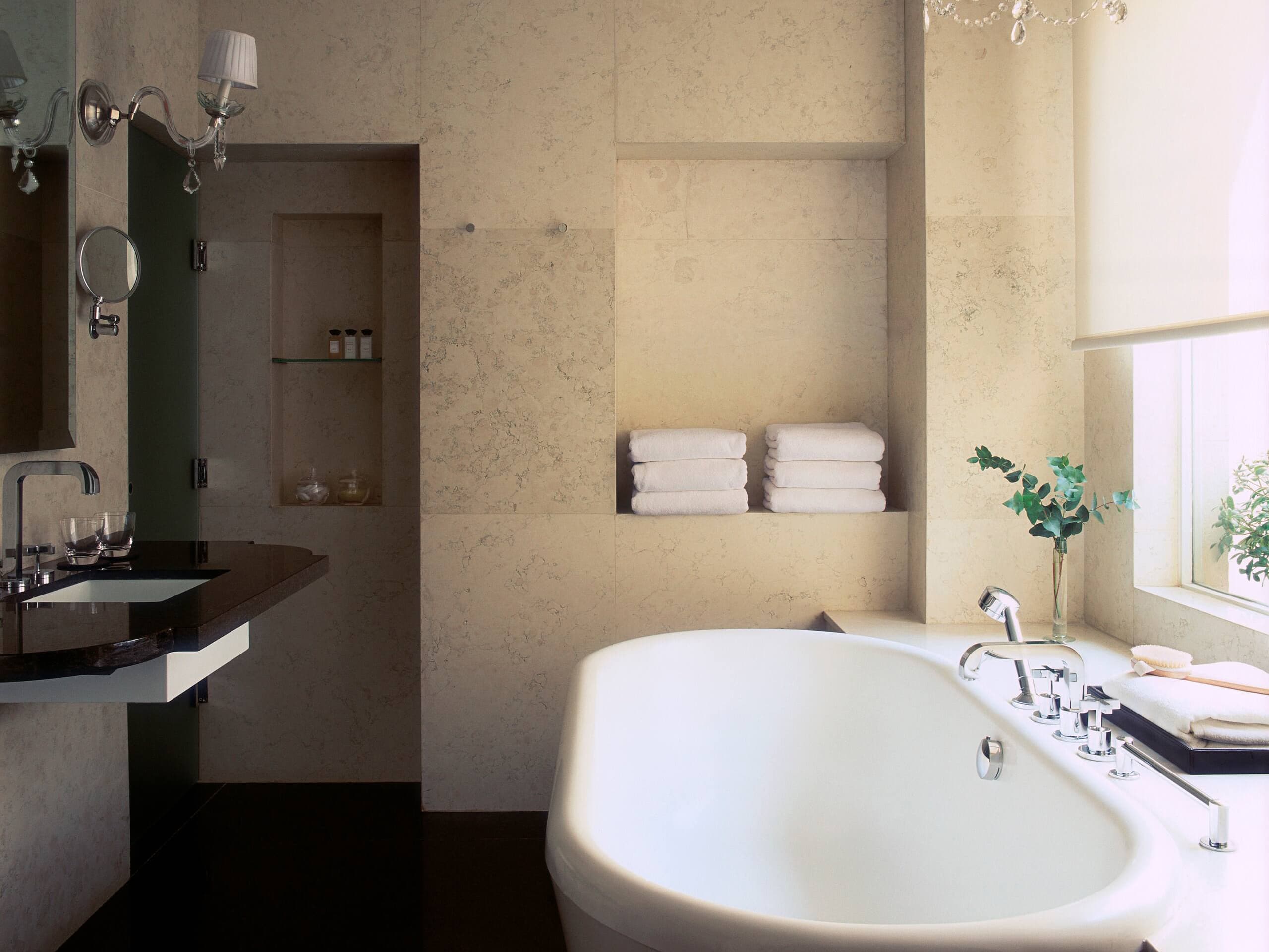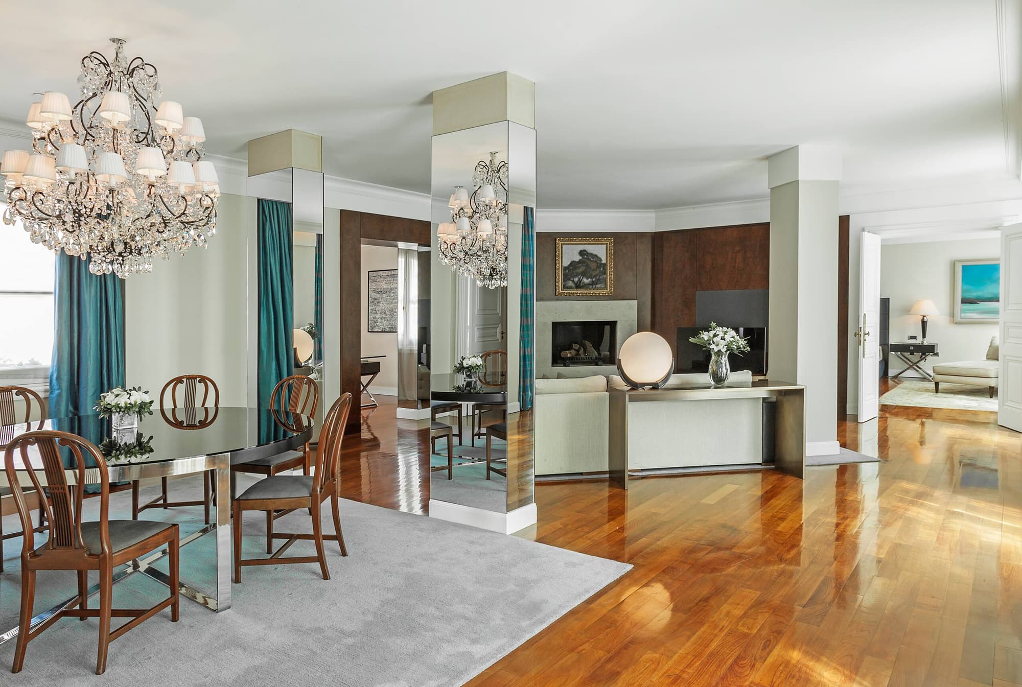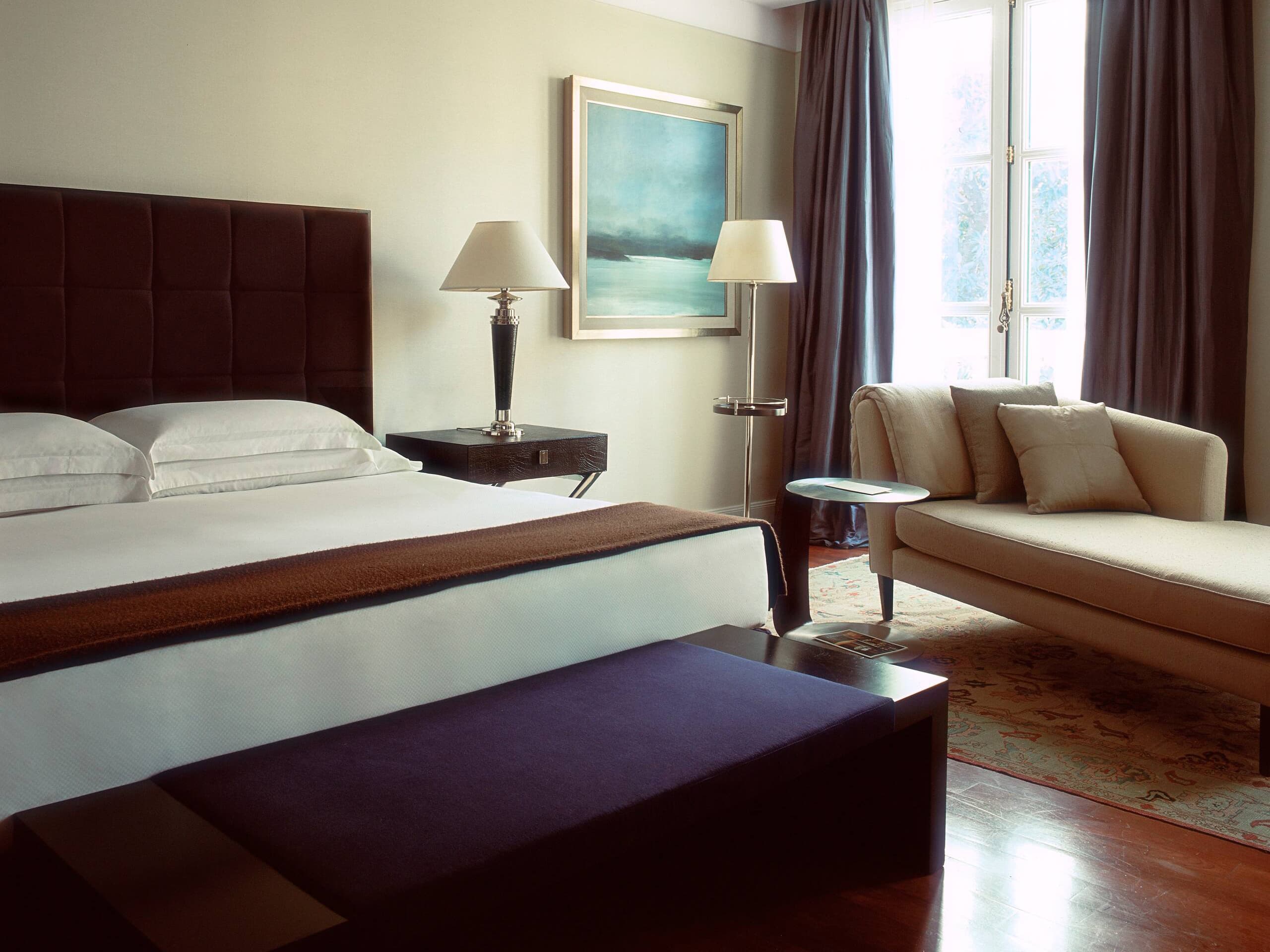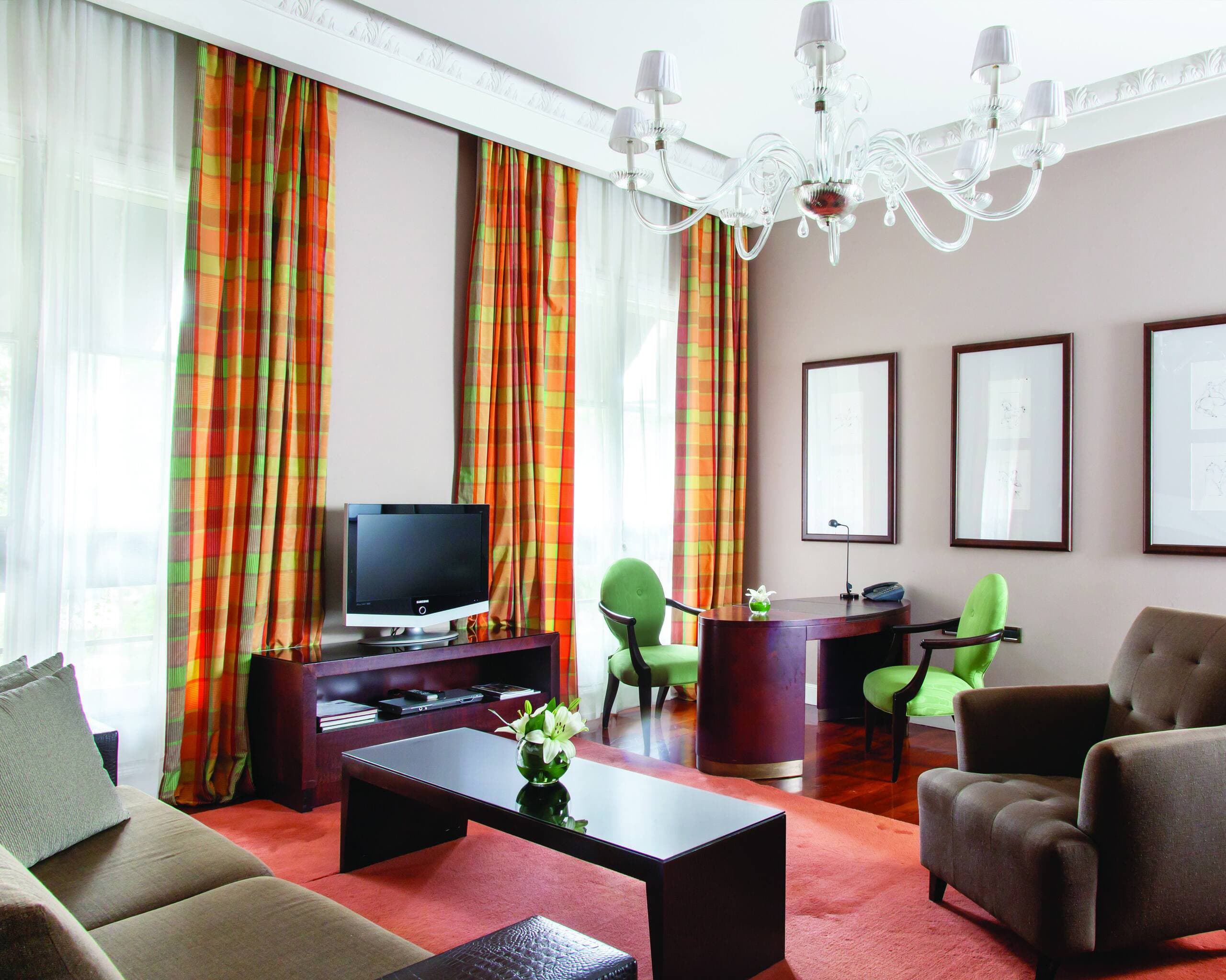 Кондиционер, отопление, кабельное телевидение, CD/DVD-плеер (по запросу), Wi-Fi доступ в Интернет, телефон, голосовая почта, сейф, мини-бар, оборудование для приготовления чая и кофе, халаты, фен. Услуги персональных камердинеров.
