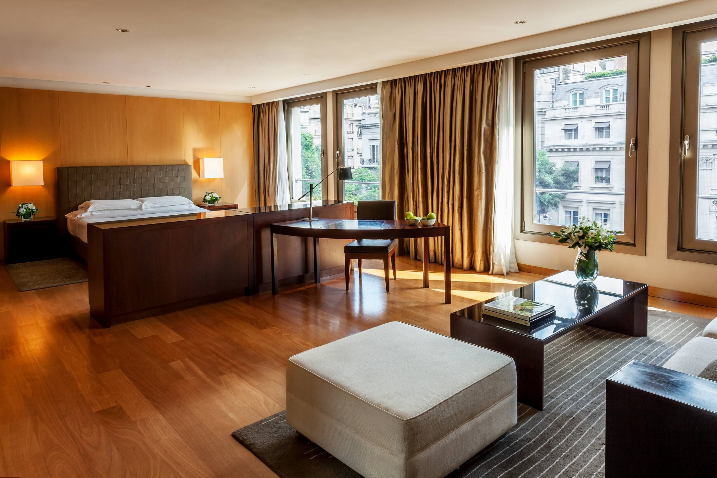 Palacio Duhau Park Hyatt Buenos Aires представляет собой роскошный дворец: колонны из белого камня, изящная лепнина, мраморные полы. Palacio Duhau Park Hyatt Buenos Aires состоит из просторных номеров с восхитительным видом на сад и город. Элегантные интерьеры выполнены в ванильных и кофейных тонах.
