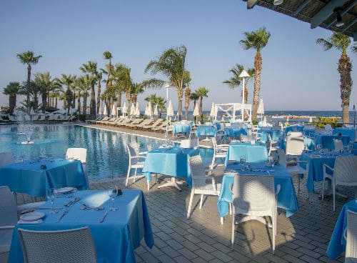 Отель расположен на песчаном пляже в окружении тропических садов, в 5 км от центра Ларнаки.