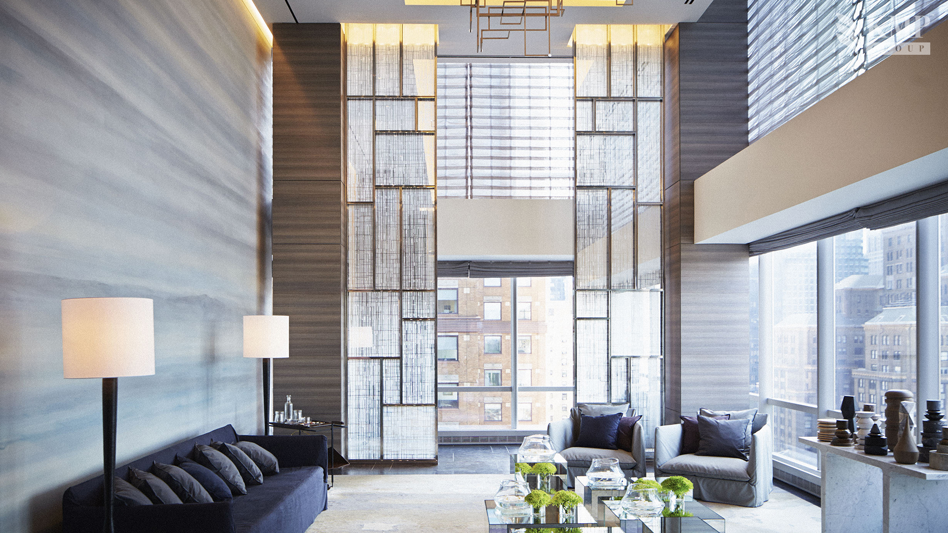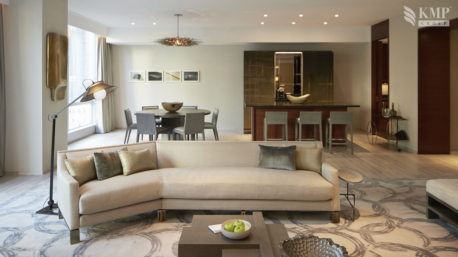 1 bedroom presidential suite (208 кв. м): гостиная с обеденной зоной (стол на 6 персон), спальня с кроватью king-size, гардеробная зона, ванная комната с ванной и душевой кабиной с функцией «тропический дождь», гостевой туалет. Панорамный вид на 58 улицу. Услуги персонального камердинера.