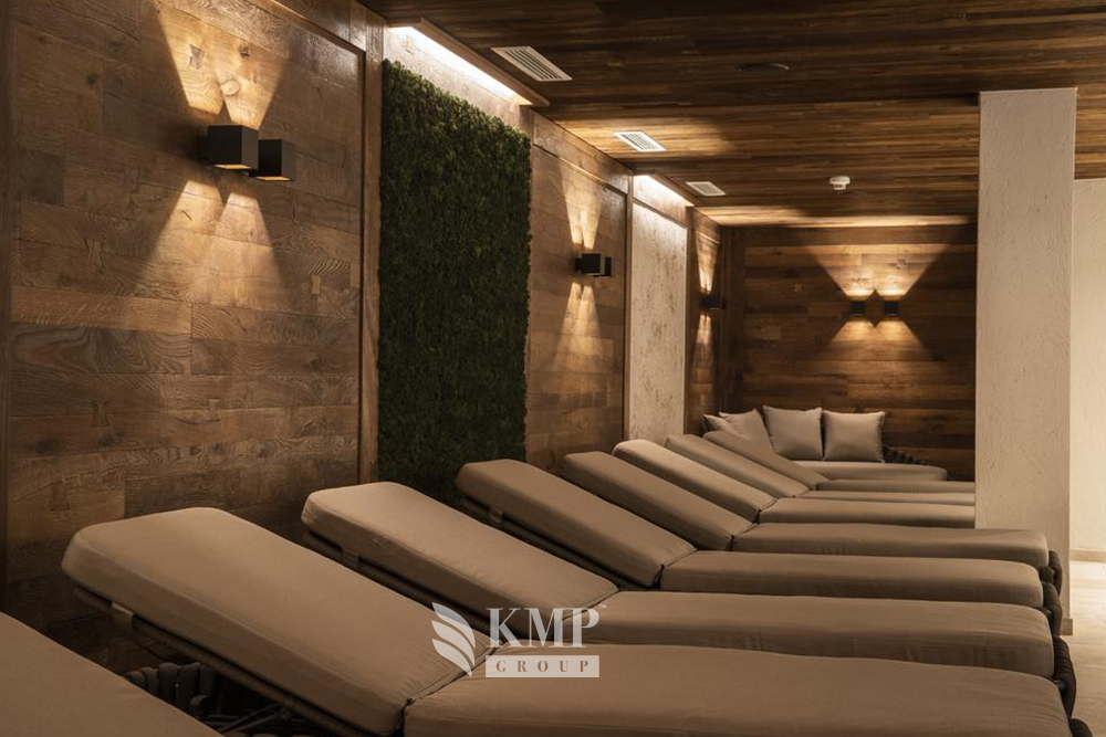 Welnesssuite: 75 м2, для 2-4 чел.; на 4-м и 5-м этаже, отдельная гостиная и спальня, DVD, кофеварка, ванна и душ, инфракрасная кабина.