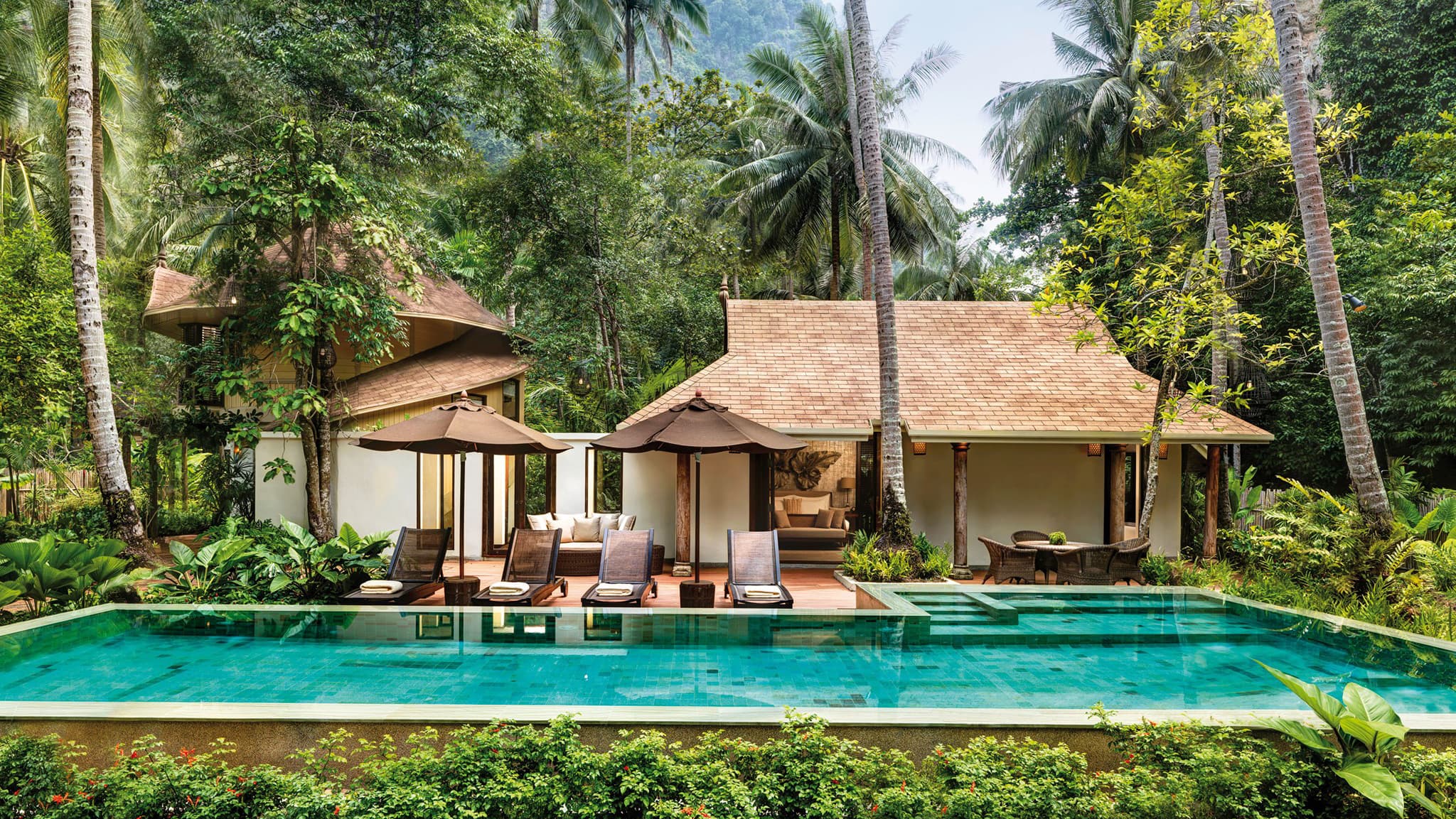 Отель Rayavadee расположен в самом центре живописного полуострова Прананг на краю национального морского парка Краби, в районе, который славится своей природной красотой, богатой флорой, фауной, морскими формами жизни. Курорт был построен более двух десятилетий назад с идеей жить, не нарушая баланс этой уникальной среды. Павильоны и виллы уютно устроились среди множества деревьев отеля, ни одно из которых не было срублено во время строительства. Здания были спроектированы так, чтобы гармонично вписаться в природное окружение.