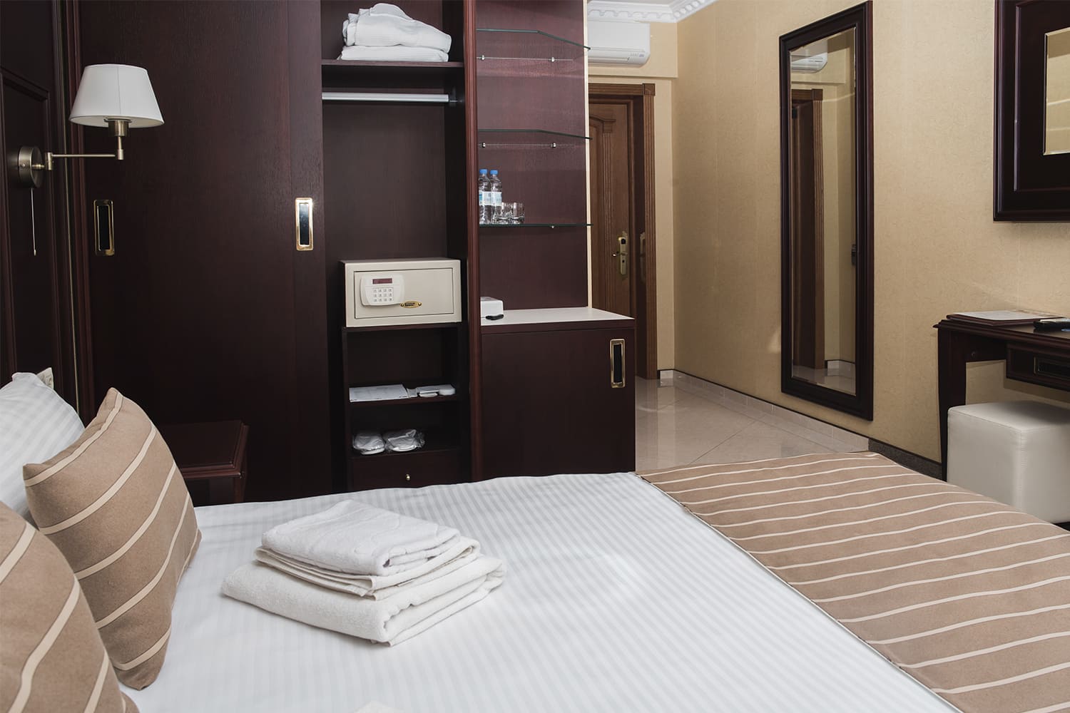Стандартный номер Комфортабельный номер площадью от 20 кв. м, сочетающий в себе современный интерьер в стиле «Неоклассика» и вид на озеро. Большинство номеров имеют выход на балкон, с мебелью для вашего отдыха. Отлично подойдет для размещения одного или двух взрослых гостей.