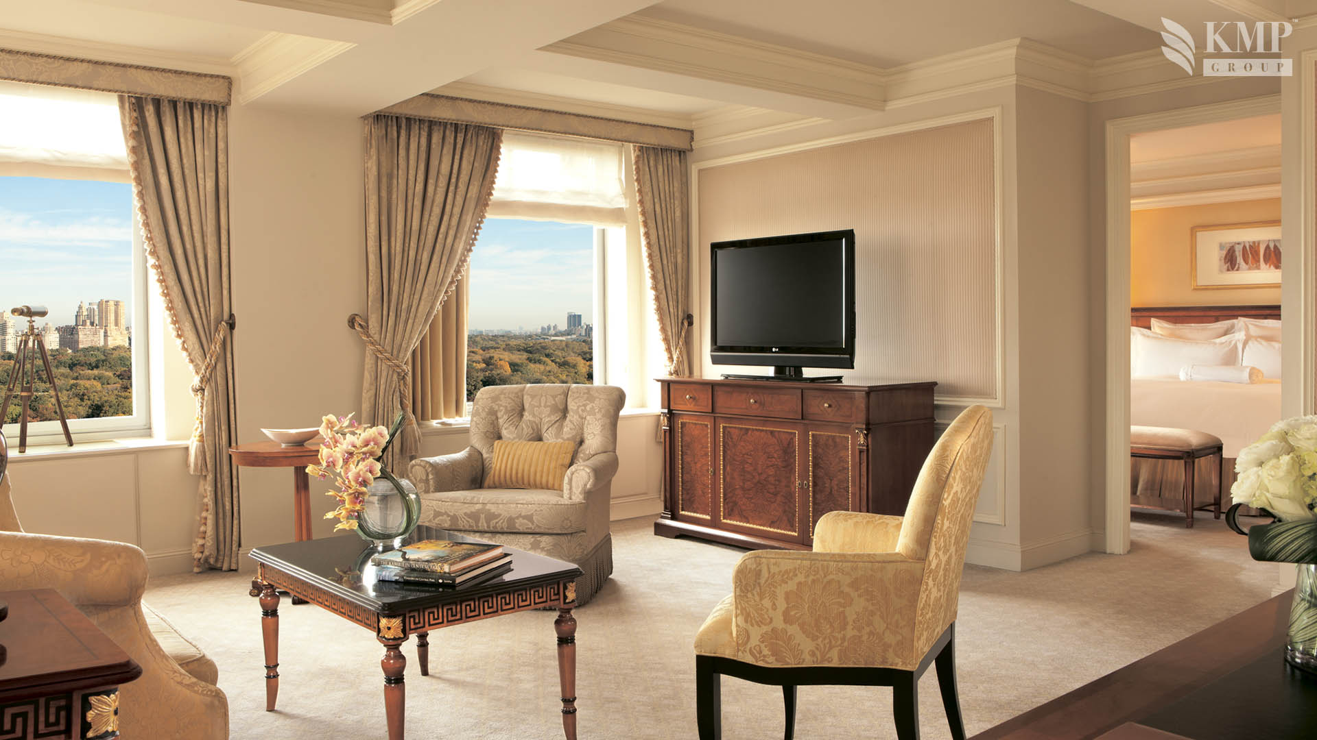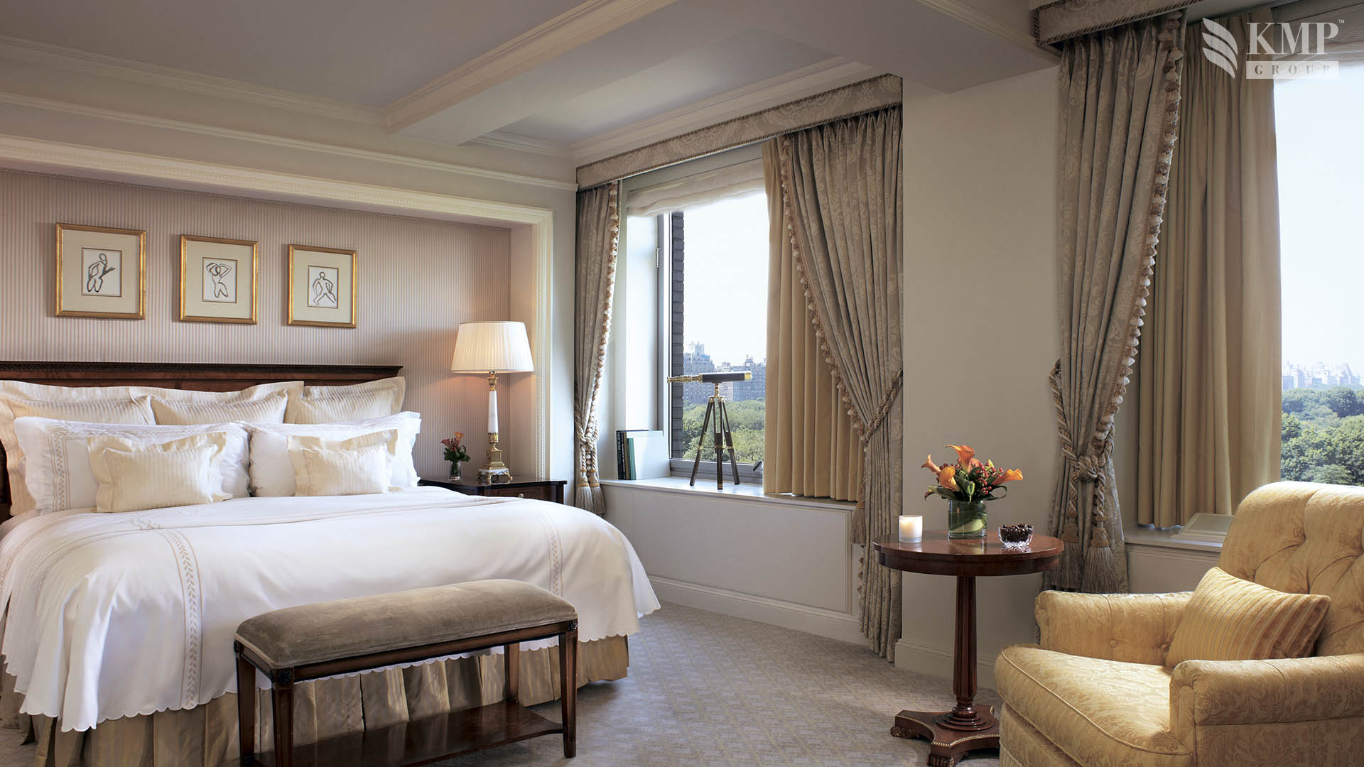 Premier park view suite (102 кв м): спальня с гостиной с обеденной зонами (стол на 6 персон), гардеробная, ванная комната с ванной и душевой кабиной, гостевой туалет. Дополнительно: стереосистема Bang & Olufsen, телевизор в ванной комнате. Расположены с 12 по 20 этаж. Вид на Центральный парк. Возможно присоединение дополнительной спальни и ванной комнаты.